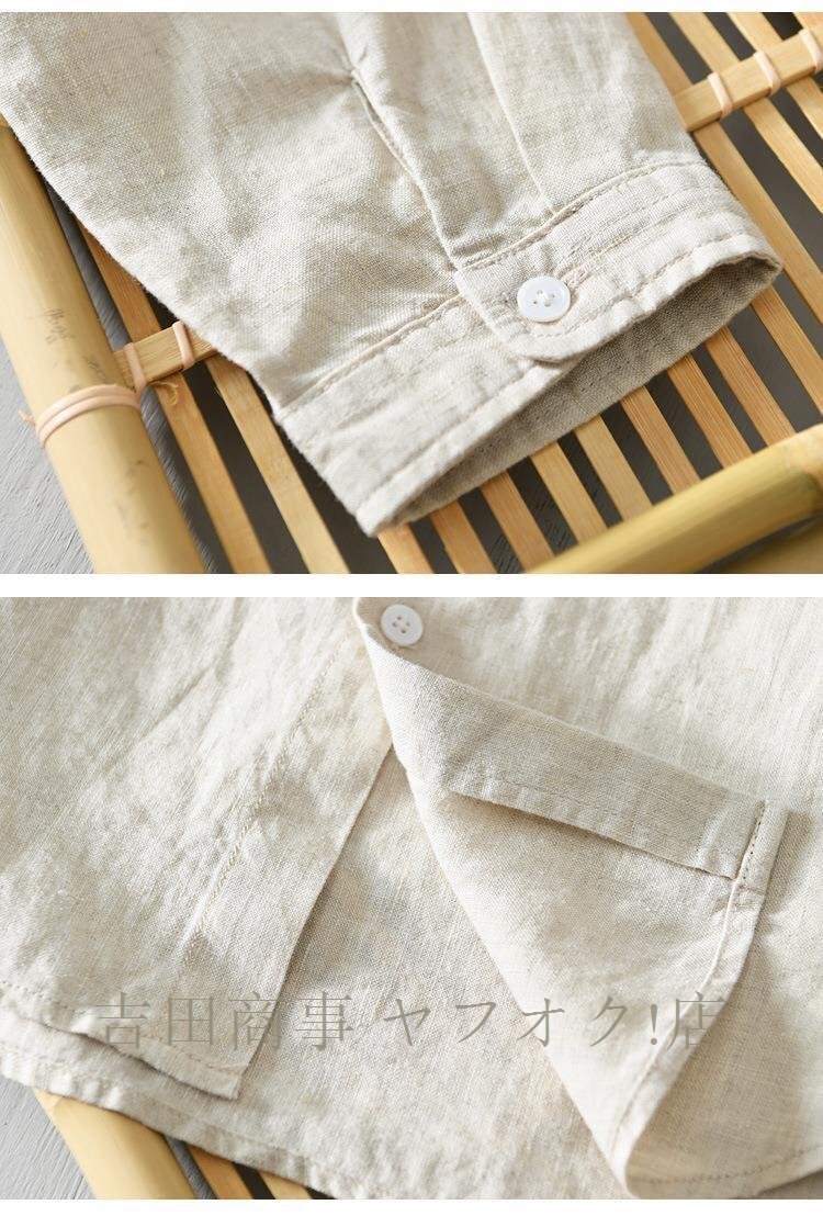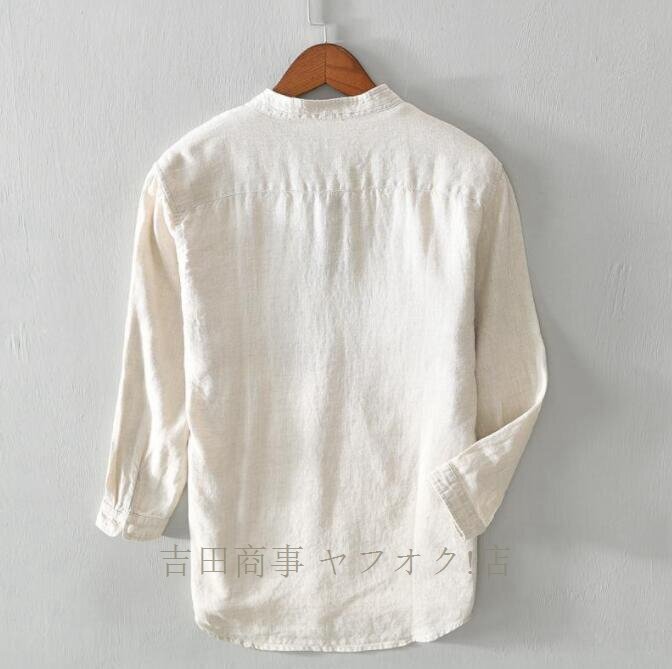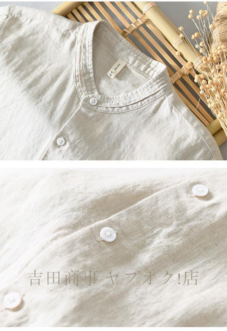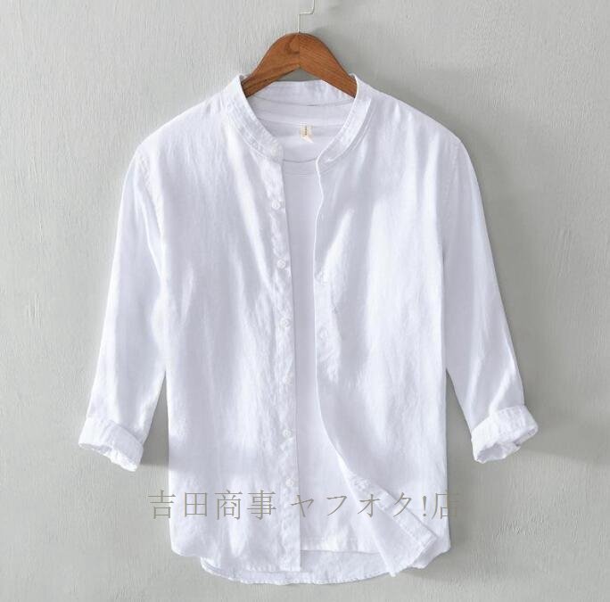 ★新品超美品 リネンシャツ メンズ 麻100% 無地 立ち襟 七分袖シャツ半袖シャツ ワイシャツ サマーシャツ カジュアル 清涼感 夏服 白 L~3XL 收藏