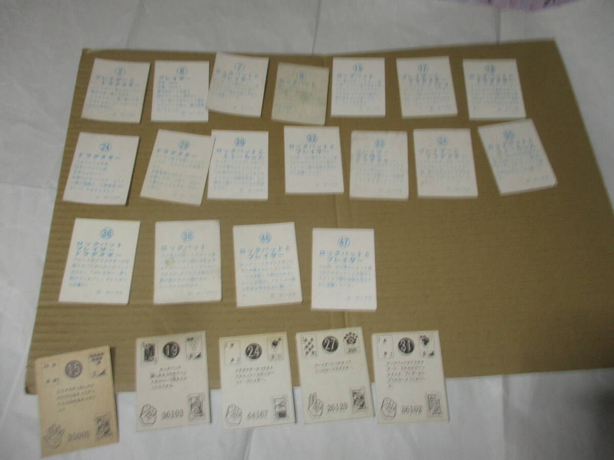 | 商品説明 | 写真のものです。 袋出しに近い美品からしわや汚れのあるものまで状態は様々です。 酷く傷んでいるものが数種あります。この作品も出品が少なくなかなかそろいません。 山勝48種+ブルマァク64種とマイナー作品に惚れると待つのは地獄です。 どなたか大量に出品していただけないかなと思います。 発送方法はレターパックのみです。定形外郵便などほかの方法は対応できません。 落札決定後要望があった場合は落札者都合による取り消し処置を執りますので ご了承願います。 |