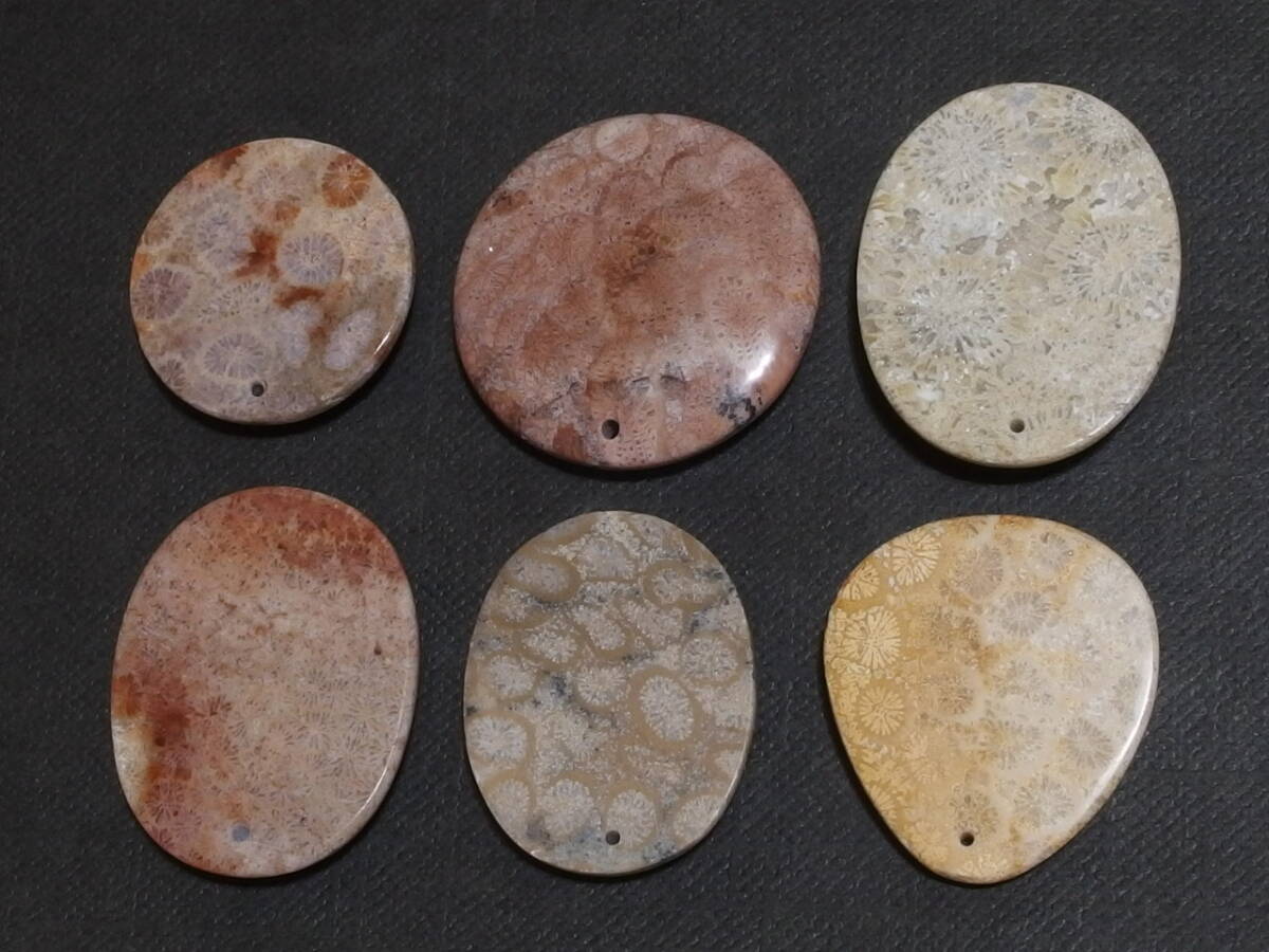 ワケアリ品 6個セット 菊花石 珊瑚の化石 フォッシルコーラル (ペンダントトップ アクセサリーなどの製作に 菊目石 サンゴ 天然石) 收藏