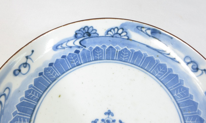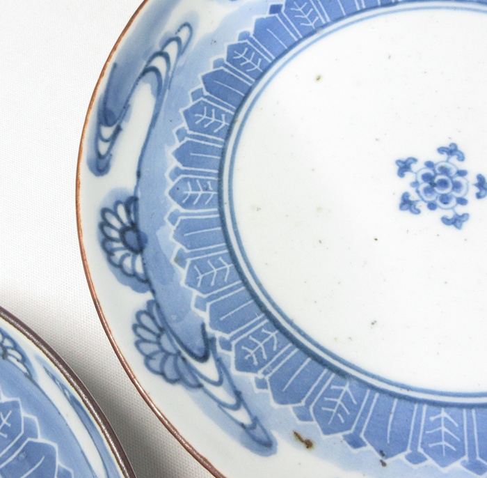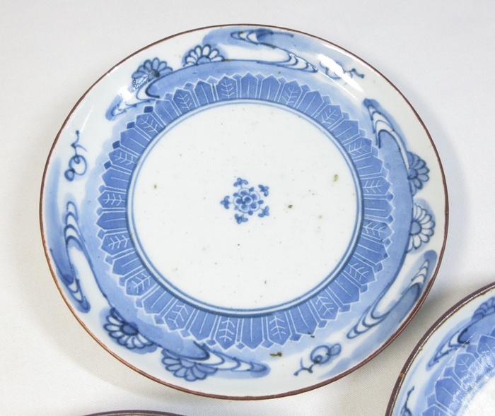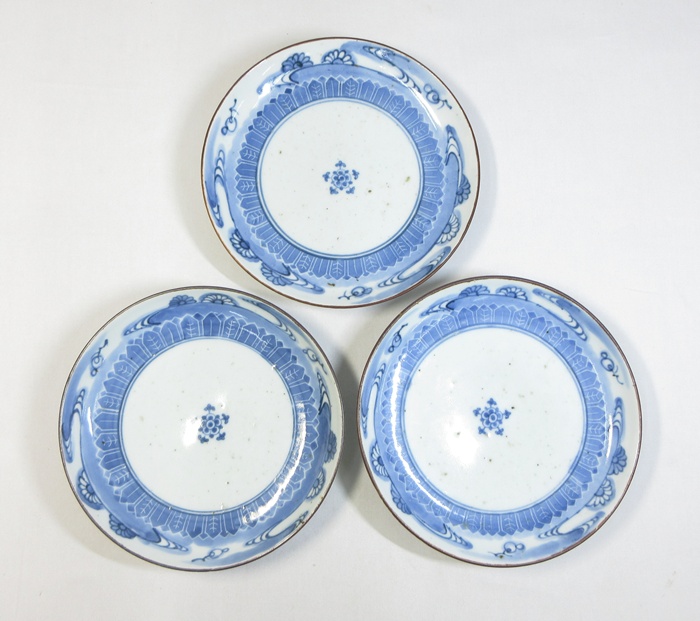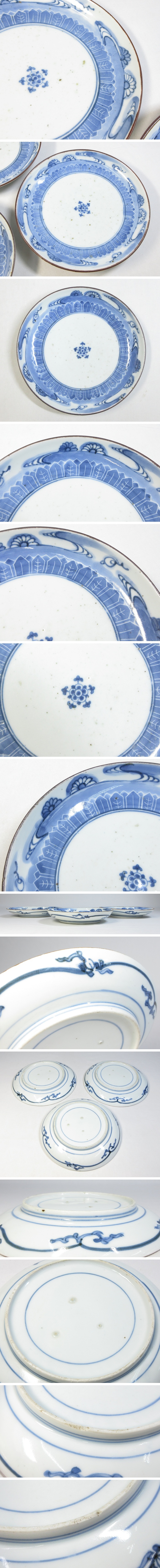 【A1233】古伊万里 染付 江戸時代 藍柿手 藍柿右衛門 五弁花 流水文 中皿 三客 收藏