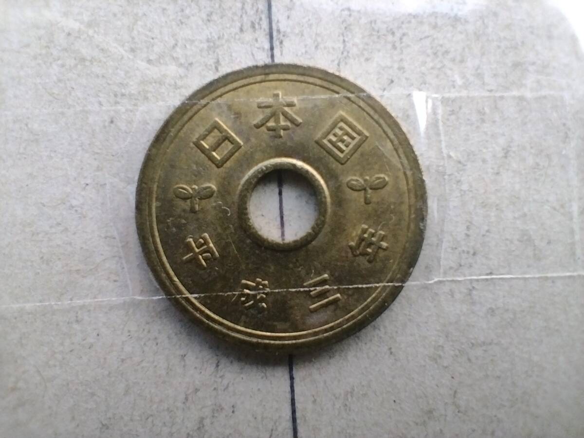 エラーコイン 平成3年 5円硬貨 5円玉 平成三年 五円玉 斜打 傾打ズレ 斜打刻 傾打ずれ 斜め打ち エラー硬貨 メダル コイン 斜め 即決 收藏