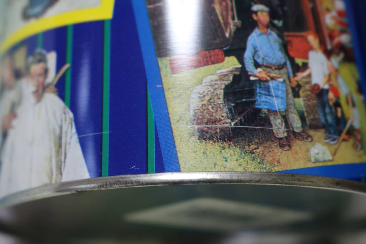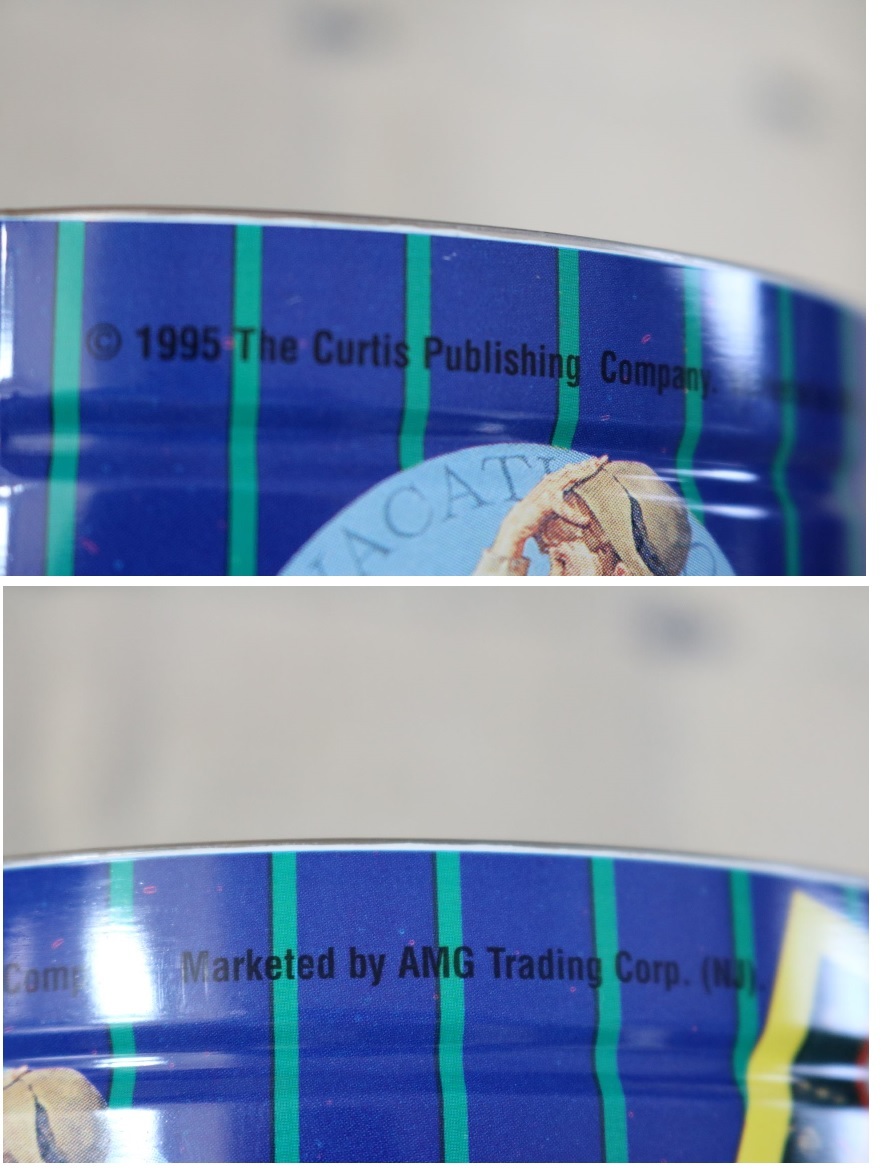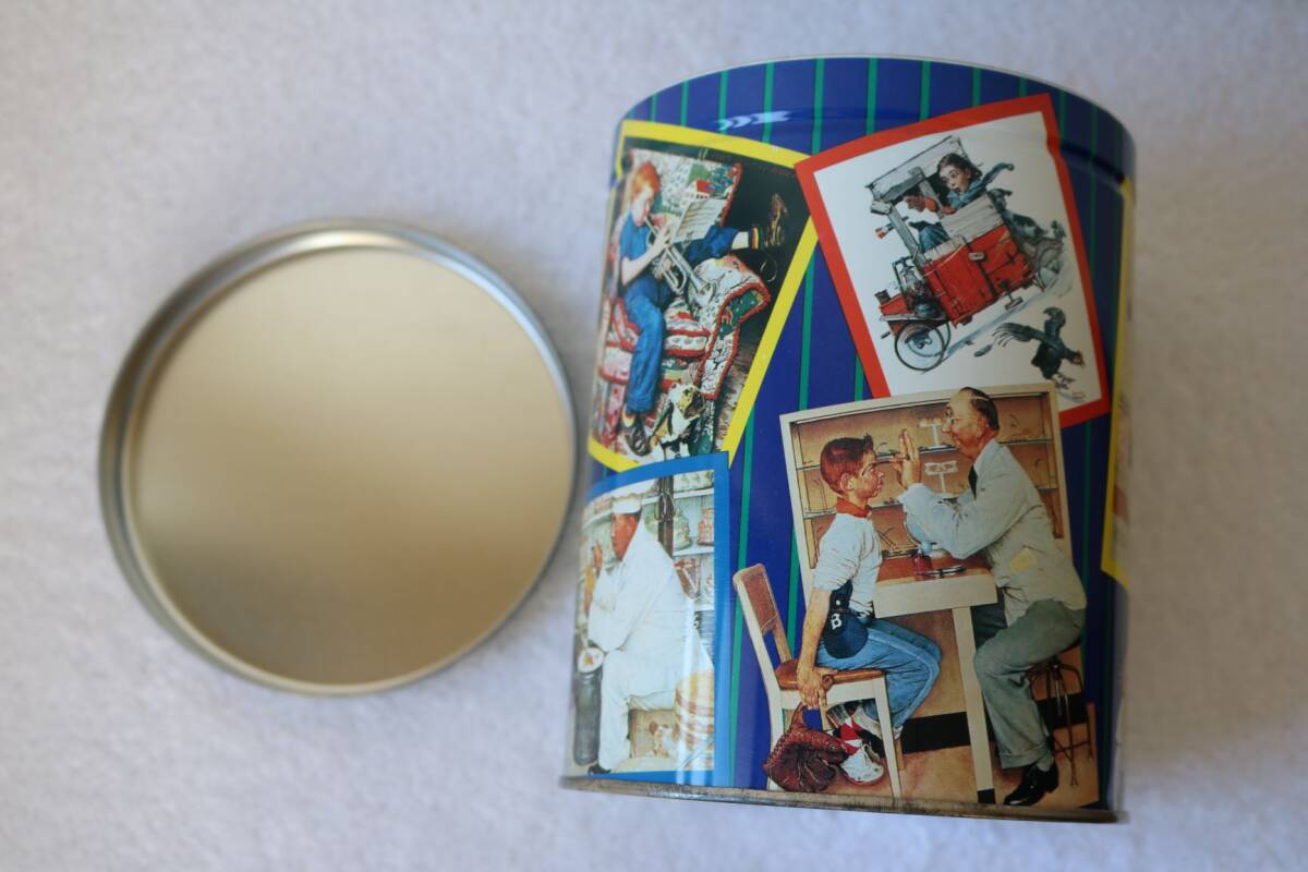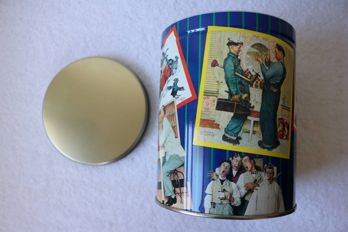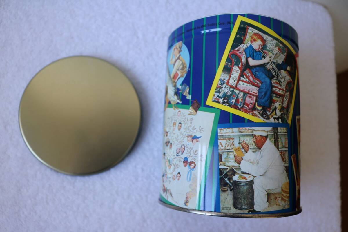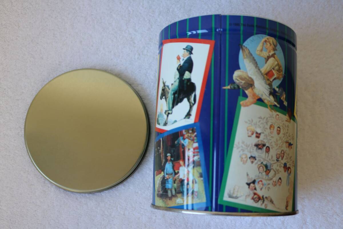 ノーマン・ロックウエル イラスト 缶 小物入れ ストック缶 1995年☆Norman Rockwell, can アメリカン コレクティブル空缶 Made in USA 收藏