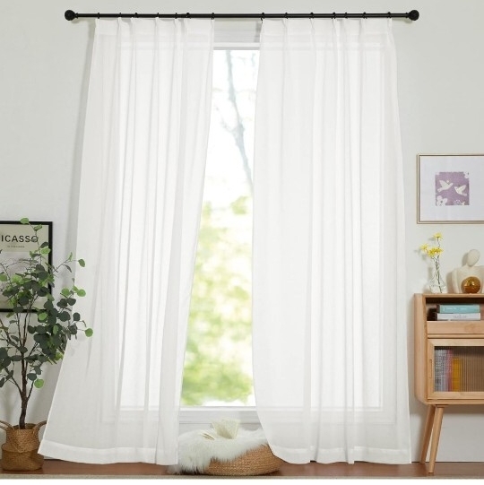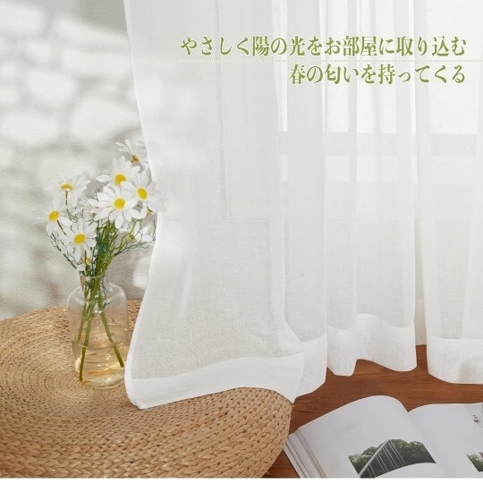 NICETOWN レースカーテン 麻風 タイプ-3 プライバシーカット インテリア 無地 日焼け防止 風通し 幅100cm 丈200cm ホワイト No.3454 收藏