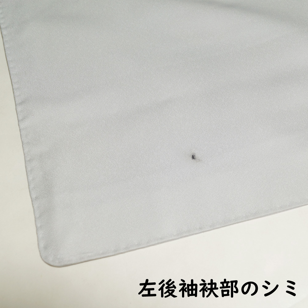 | 状 態 | ※ランク2.5 衿や上前、袖に薄いシミがあります。裾部に薄い着用汚れがあります。左後袖振り部に画像のようなシミがあります。 |