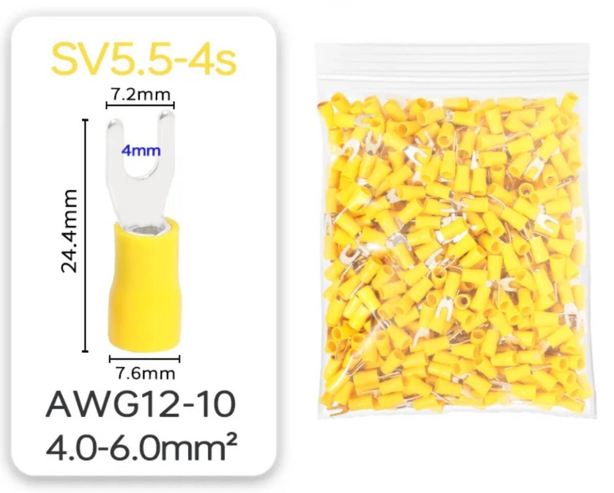 フォーク型圧着端子 Y字コネクタ 真鍮製 M4 AWG 10-12ワイヤー用 SV5.5-4S 10個セット 收藏