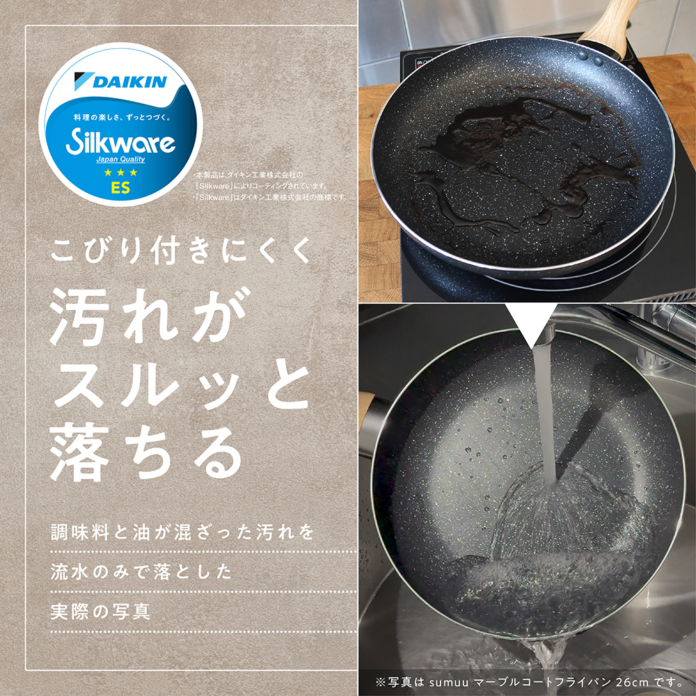 フライパン 26cm マーブルコート 鍋 シルクウェア 二人 三人 ガス対応 IH対応 兼用 くっつきにくい 洗いやすい 高耐久 軽量 [mck159] 收藏