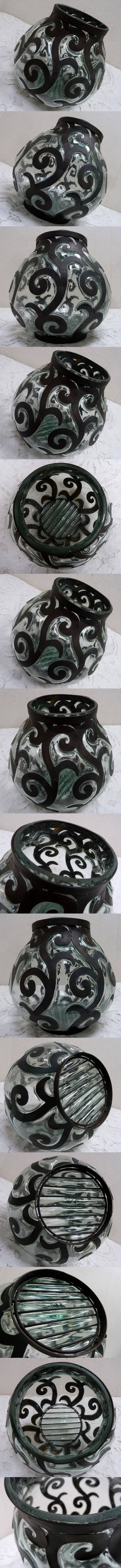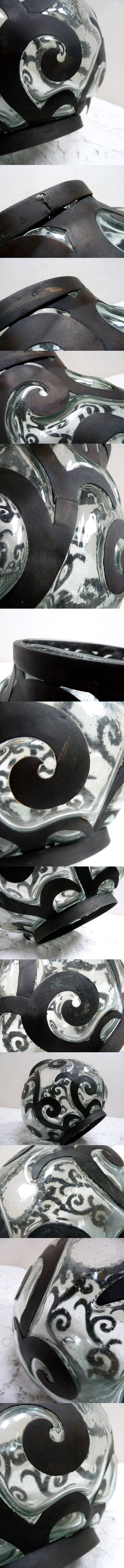 (☆BM)鉄製/アイアン アート ガラス オブジェ 高さ28㎝ 置物 フラワーベース 花器 花瓶 アンティーク調 レトロ 收藏