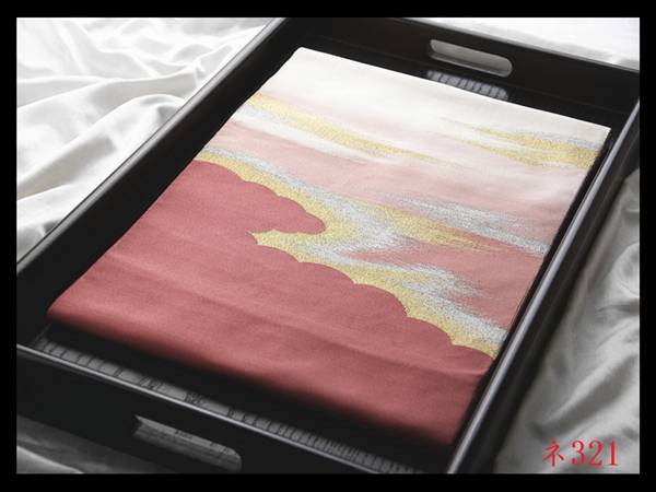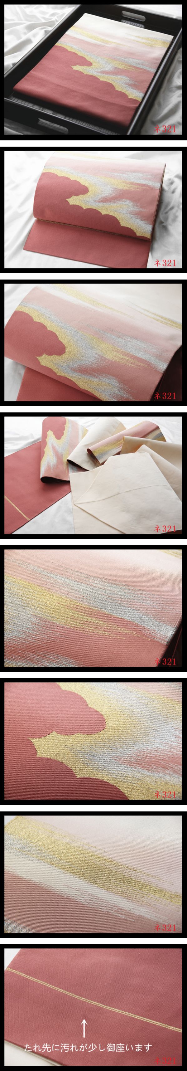 【ネ321】西陣逸品 爪掻き本綴れ 雲紋 鳥の子色長春色 気品豊かに 正絹純金糸高級美術名古屋帯 ◇検◇簪着物袋帯名古屋帯帯締め 收藏