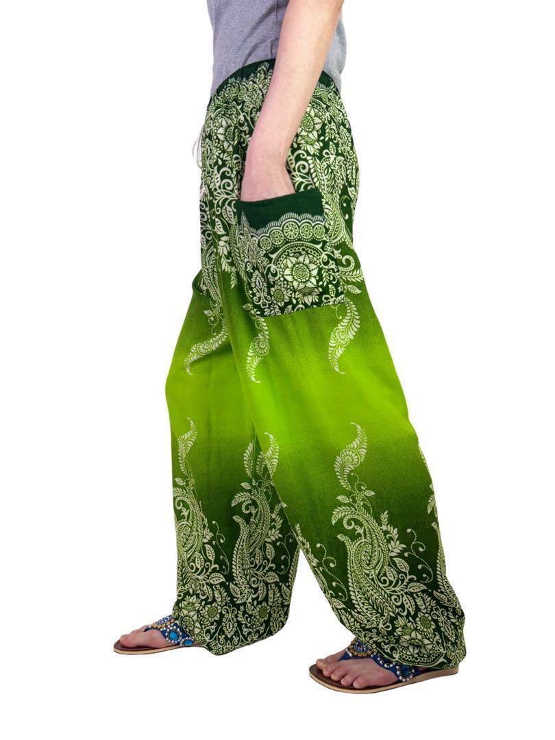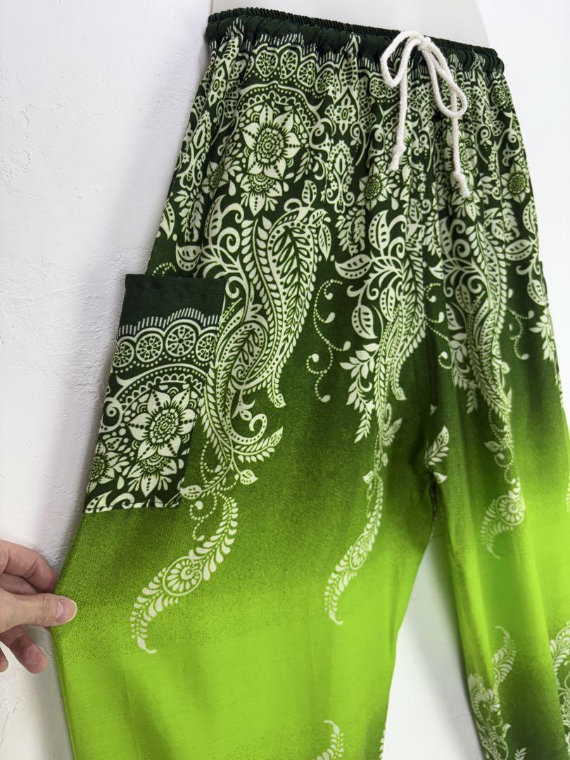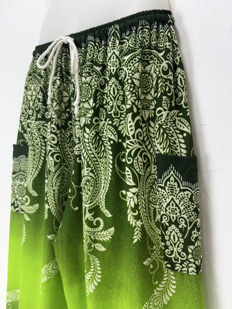 【新品】アラジンパンツ タイパンツ ヨガ タイマッサージ レーヨン パジャマ 夏 サルエルパンツ【ゴム紐】600グリーン Y862 收藏