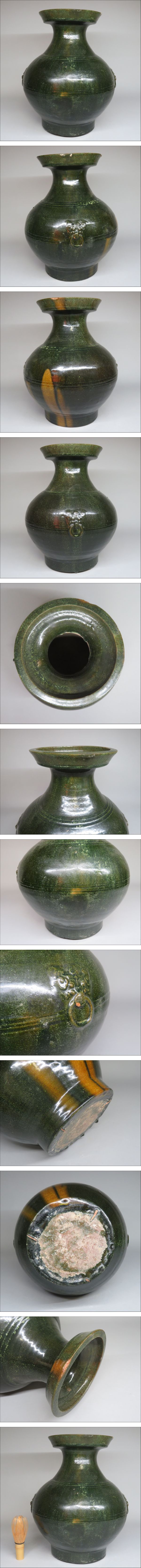 「都内コレクター所蔵品」漢時代 緑釉獣耳大壷 中国美術 東漢時代 ◆加彩 花瓶 発掘 彩文土器 彩陶壺 | ||