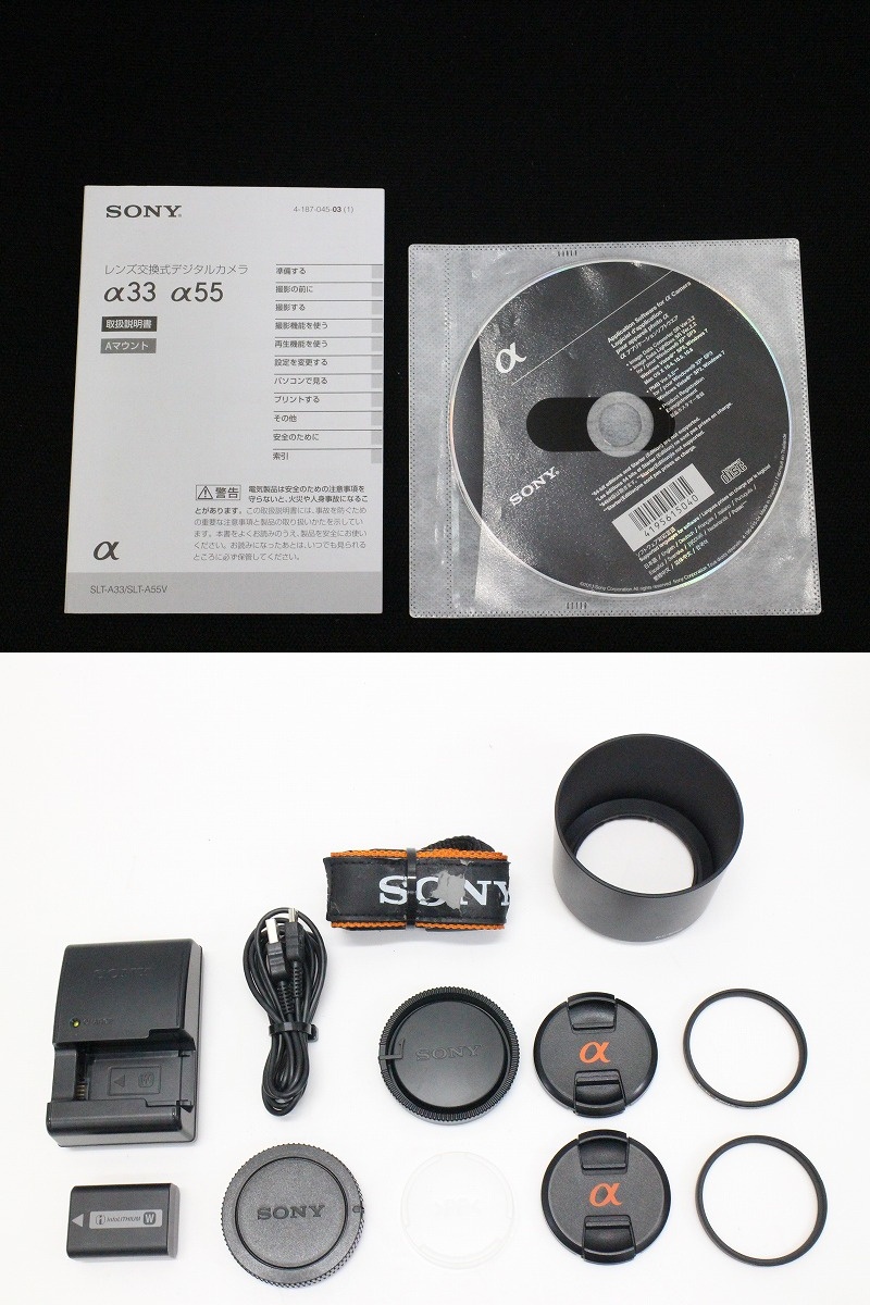 ■メーカー : SONY ■型番 : α55 SLT-A55V ■レンズ型番 ・SAL1855 DT 18-55mm F3.5-5.6 SAM ・SAL55200-2 DT 55-200mm F4-5.6 SAM 【商品の状態 当店での確認内容】 基本動作は確認できておりますが、ホットシューは未確認となります。 レンズ2本ともにチリは見受けられますが、主観では逆光等を除き通常使用において影響は無いかと思われる程度です。 「商品の状態」に関しましては当方主観の目安となります。外観などは中古品で個人差もありますので詳細は画像にてご判断ください。 画像にて不明な点はご質問下さい。 出品商品は画像のものですべてになります。画像に写っているもの以外は付属いたしません。 (中古品となるためレンズ内のチリ/ホコリに関しましては、撮影に影響が出ない限りは記載しておりません。) (総シャッター数が記載の商品に関しましてはあくまで目安となります。) ※注意※ のシステム上、送料表記が送料未定となっておりますが、送料に関しては全て有償となりますので下記を参照下さい。 【送料 全国一律 950 円 沖縄、離島は別途お見積り】 ※送料がお得になるサービスです(下取りシステムのご案内です) 当ストアでは商品を安全にお届け出来るよう提携運送会社と協議の上、発泡緩衝材や強度段ボールの使用等 運送会社が指定する梱包方法や資材を採用しております。 より安全にお届け出来るよう商品仕様により梱包サイズが大きくなる場合や個口数が増える事がございます。 【当ストアオークションルールを入札前に必ずご確認ください。】 【落札後の取引手順】 ・落札後は取引ナビにて、必要事項をご入力後、送信ください。 取引終了後48時間(土、日は除く)以内に入力をお願い致します。 ※ご連絡が頂けない場合は落札者様都合でのキャンセルとさせていただきます。 ・落札代金(商品代金+消費税+送料)の入金をお願い致します。 ※大型商品の場合は送料確定後の決済となる為取引ナビを入力頂き、当ストアより送料のご案内が来るまでお待ちください。(土曜、日曜、祝日の場合は翌営業日より順次ご案内いたします) ・お支払い方法は※クレジットカード/※PayPay残高/※PayPayクレジット/PayPay銀行/ゆうちょ銀行のみです。 ※商品代金引換(代引き)のお取り扱いはしておりません。 ※領収証の発行が必要な方はご連絡ください。 ※銀行振込の際の振込手数料はご負担願います。 ・入金確認後に出荷手配を致します。 (原則入金確認後3営業日以内に発送いたしますが、大型や重量のある製品はお時間をいただく場合もございます。) ・発送は当店指定の運送会社の元払いのみでの発送となります。 ※他の運送会社、送料代引き等は致しかねます。 ※落札者様ご自身での運送会社の手配いただく事も可能ですが荷物事故の責任の所在の問題上、梱包は致しかねます。 ※店頭にお越し頂き手渡しも可能(福岡市早良区)です。ご希望の方はご落札後にご連絡下さい。 ・大型/重量物商品の送料につきましては商品の特性上、荷降ろし状況等により送料が大きく前後し運送業者に別途見積りが必要な為、早めのお問い合わせにてお見積り上、入札をお願い致します。 【初期不良の保証について】 ・商品到着後の初期動作不良、また配送中の事故による破損、不具合が有る場合は、商品発送後10日以内に当ストアまでご連絡ください。当ストアでは修理での対応を優先させて頂きますが、修理不可の場合は全額返金させて頂きます。 (商品代金+消費税+送料のお支払い頂いた金額となります) 【初期不良の保証の対象外について】 次の場合は保証の対象外となりますのご留意ください ・ジャンク商品、現状商品、難あり商品での出品商品。 ※難あり商品に関しましては動作確認時に一部動作不良が確認された商品になり、記載している動作確認以外にも、動作不良がある可能性もございます。こちらに関しましても保証対象外となりますことをご理解ください。 ・年代物のオーディオなどで、当店にてわからない範囲で部品が交換されている場合 ・楽器類の特殊機材(マイクロスコープ等)での確認までは行っておりません。気になる方は事前にご質問いただくか、入札をお控えください。 ※初期不良に関しましては【商品の状態】に記載のもの、またそれによって起因する動作不良は対象外です。 ※商品発送後10日を過ぎてのご連絡は対応が出来ませんので、商品が到着しましたらお早めに確認をお願い致します。 【メーカー保証の加入・継承】 ・未使用品、展示品やメーカー保証期間が残っている商品に関しまして、メーカー保証の加入、継承が必要な方は、落札後取引ナビ内にて当ストアにお知らせください。商品発送までにご連絡いただけない場合、メーカー保証の手続きを承れない場合があります。 【評価について】 ・評価不要の場合、必ず取引ナビの「要望欄」にてお知らせください。それ以外でご連絡をいただいた場合、対応できない可能性がございます。一度行った評価はシステム上取り消しが行えませ