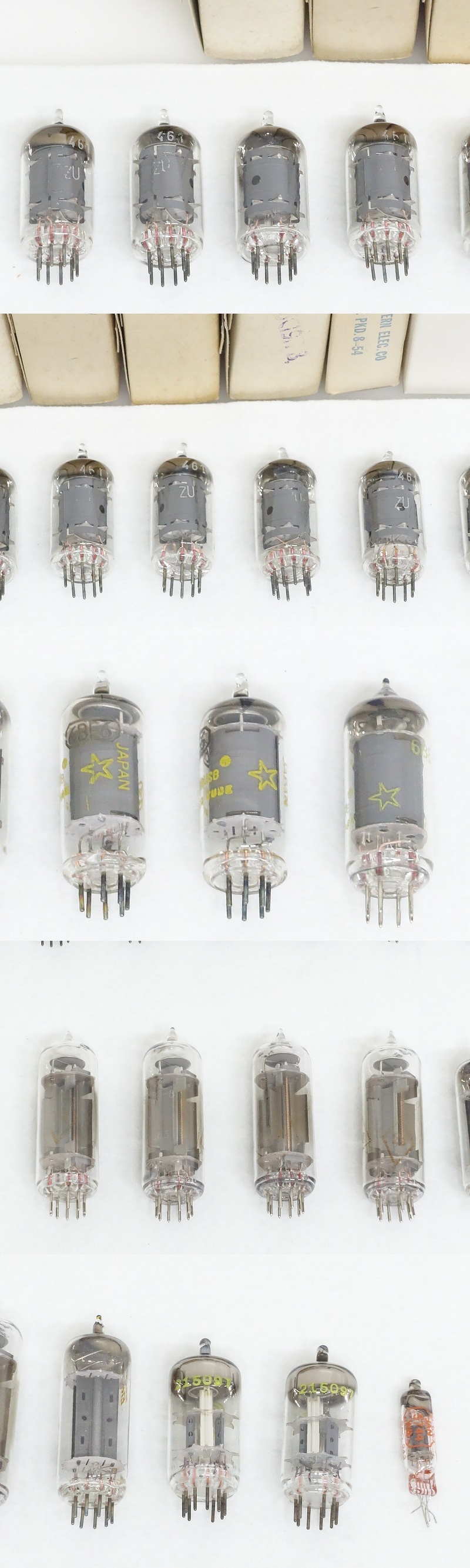 ■TESLA EF86/Westinghouse 6BE6/Western Electric 412A 他 真空管 19本セットでの出品となります。 【商品の状態 当店での確認内容】 動作未確認のため、現状での出品とさせて頂きます。 ※文字消えしている所がございます。 ※箱と中身が違う可能性があるため画像にてご確認下さい。 「商品の状態」に関しましては当方主観の目安となります。外観などは中古品で個人差もありますので詳細は画像にてご判断ください。 画像にて不明な点はご質問下さい。 出品商品は画像のものですべてになります。画像に写っているもの以外は付属いたしません。 ※注意※ のシステム上、送料表記が送料未定となっておりますが、送料に関しては全て有償となりますので下記を参照下さい。 【送料 全国一律 950 円 沖縄、離島は別途お見積り】 ※送料がお得になるサービスです(下取りシステムのご案内です) 当ストアでは商品を安全にお届け出来るよう提携運送会社と協議の上、発泡緩衝材や強度段ボールの使用等 運送会社が指定する梱包方法や資材を採用しております。 より安全にお届け出来るよう商品仕様により梱包サイズが大きくなる場合や個口数が増える事がございます。 【当ストアオークションルールを入札前に必ずご確認ください。】 【落札後の取引手順】 ・落札後は取引ナビにて、必要事項をご入力後、送信ください。 取引終了後48時間(土、日は除く)以内に入力をお願い致します。 ※ご連絡が頂けない場合は落札者様都合でのキャンセルとさせていただきます。 ・落札代金(商品代金+消費税+送料)の入金をお願い致します。 ※大型商品の場合は送料確定後の決済となる為取引ナビを入力頂き、当ストアより送料のご案内が来るまでお待ちください。(土曜、日曜、祝日の場合は翌営業日より順次ご案内いたします) ・お支払い方法は※クレジットカード/※PayPay残高/※PayPayクレジット/PayPay銀行/ゆうちょ銀行のみです。 ※商品代金引換(代引き)のお取り扱いはしておりません。 ※領収証の発行が必要な方はご連絡ください。 ※銀行振込の際の振込手数料はご負担願います。 ・入金確認後に出荷手配を致します。 (原則入金確認後3営業日以内に発送いたしますが、大型や重量のある製品はお時間をいただく場合もございます。) ・発送は当店指定の運送会社の元払いのみでの発送となります。 ※他の運送会社、送料代引き等は致しかねます。 ※落札者様ご自身での運送会社の手配いただく事も可能ですが荷物事故の責任の所在の問題上、梱包は致しかねます。 ※店頭にお越し頂き手渡しも可能(福岡市早良区)です。ご希望の方はご落札後にご連絡下さい。 ・大型/重量物商品の送料につきましては商品の特性上、荷降ろし状況等により送料が大きく前後し運送業者に別途見積りが必要な為、早めのお問い合わせにてお見積り上、入札をお願い致します。 【初期不良の保証について】 ・商品到着後の初期動作不良、また配送中の事故による破損、不具合が有る場合は、商品発送後10日以内に当ストアまでご連絡ください。当ストアでは修理での対応を優先させて頂きますが、修理不可の場合は全額返金させて頂きます。 (商品代金+消費税+送料のお支払い頂いた金額となります) 【初期不良の保証の対象外について】 次の場合は保証の対象外となりますのご留意ください ・ジャンク商品、現状商品、難あり商品での出品商品。 ※難あり商品に関しましては動作確認時に一部動作不良が確認された商品になり、記載している動作確認以外にも、動作不良がある可能性もございます。こちらに関しましても保証対象外となりますことをご理解ください。 オーディオ機器で前オーナー様が当店にてわからない範囲で部品が交換されている場合。 (当店でも全てのオーディオ機器の仕様は把握しておりませんので画像にてご判断、または入札前にご質問をお願いします) ・楽器類の特殊機材(マイクロスコープ等)での確認までは行っておりません。気になる方は事前にご質問いただくか、入札をお控えください。 ※初期不良に関しましては【商品の状態】に記載のもの、またそれによって起因する動作不良は対象外です。 ※商品発送後10日を過ぎてのご連絡は対応が出来ませんので、商品が到着しましたらお早めに確認をお願い致します 【メーカー保証の加入・継承】 ・未使用品、展示品やメーカー保証期間が残っている商品に関しまして、メーカー保証の加入、継承が必要な方は、落札後取引ナビ内にて当ストアにお知らせください。商品発送までにご連絡いただけない場合、メーカー保証の手続きを承れない場合があります。 【評価について】 ・評価不要の場合、必ず取引ナビの「要望欄」にてお知らせください。それ以外でご連絡をいただいた場合、対応できない可能性がございます。一度行った評価はシステム上取り消しが行えませんのでご了承ください。 【入札削除・キャンセルについて】 ・入札後はトラブル防止の為いかなる事情がおきまして