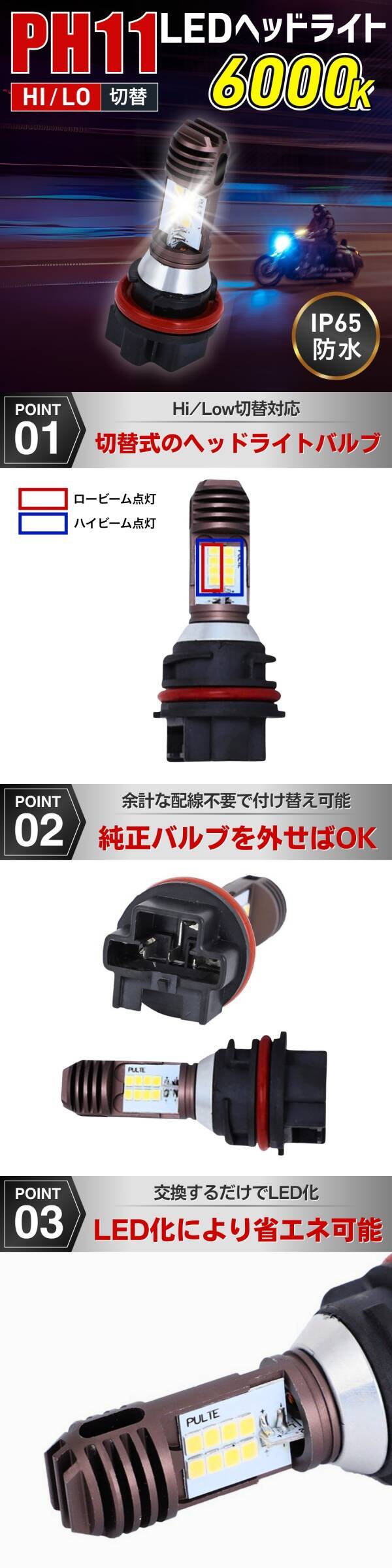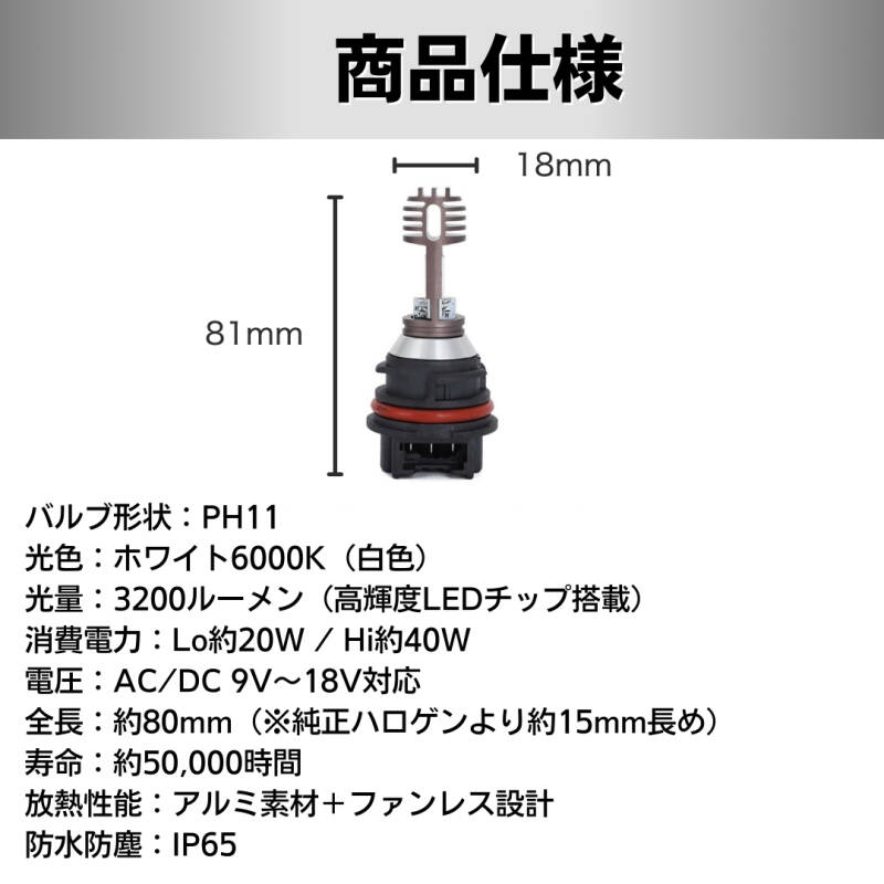PH11 LED バイク ヘッドライト バルブ 爆光 Hi/Lo切替 6000K ホンダ ライブディオ AF34 AF35 AF62/63/68 クレアスクーピー スズキ ヤマハ 收藏