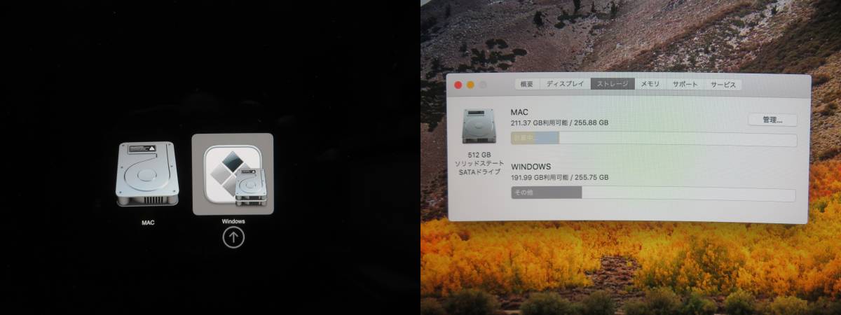 ◆ ストレージ SSD:爆速 SSD 512GB 大容量 ( パーティションはMac,Windowsそれぞれ SSD 256GBで分けてありますので、ご利用目的に応じて使い分けできます。)