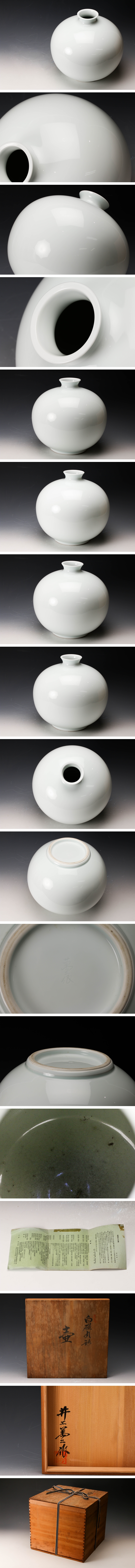 【佳香】人間国宝 井上萬二 本人作 高さ29cm 白磁丸形壷 共箱 栞 本物保証 收藏