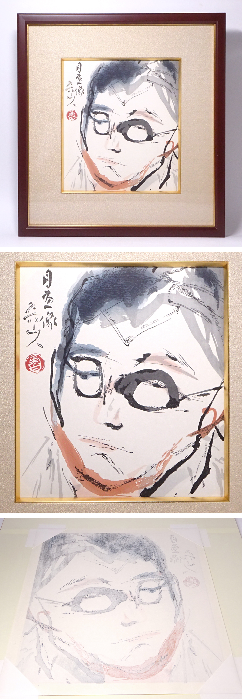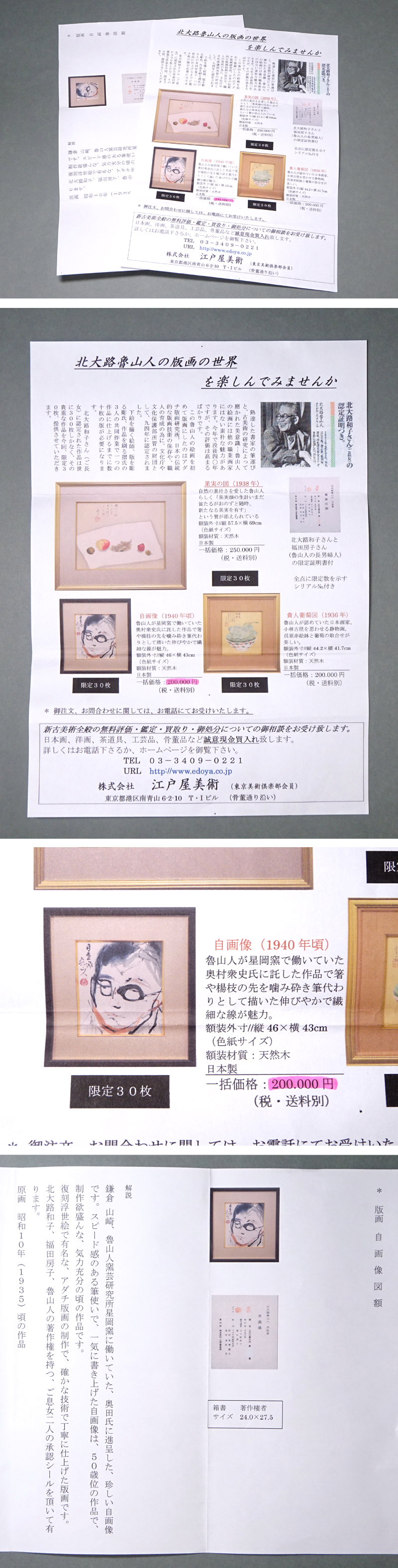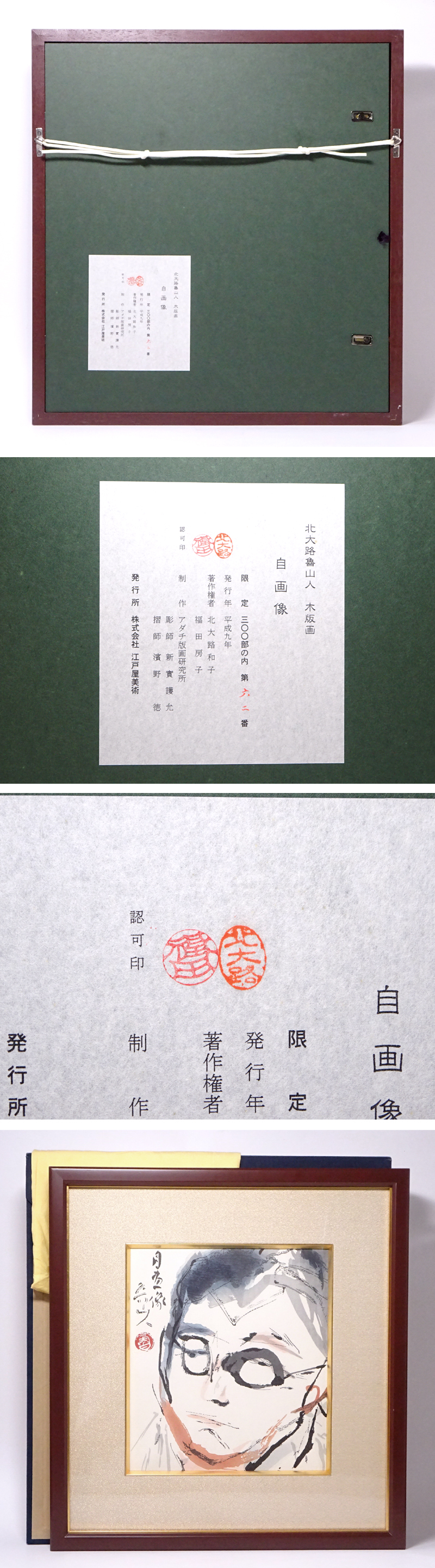 慶應◆【北大路魯山人】限定制作木版画 自画像 昭和10年頃の作 額装 定価20万以上 アダチ版画研究所制作 北大路和子、福田房子認定証明書 收藏