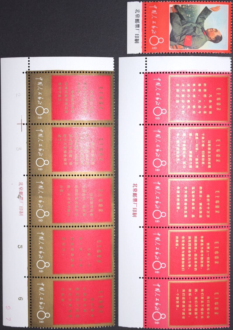 70■未使用 中国切手 文1 毛主席の長寿を祝う (語録) 11種完 5種連刷×2 耳付き 銘板付き 收藏