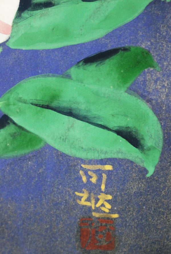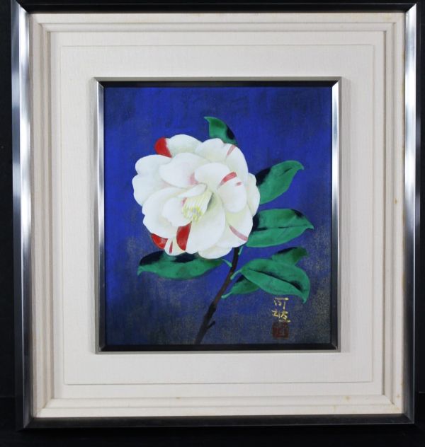 《真作》★笠原 可雄【椿】(仮題) 日本画.色紙 .額装*師 野田九浦*日展会員*日月社運営委員*院展*新文展.文展出品*埼玉.物故*[桃] 收藏