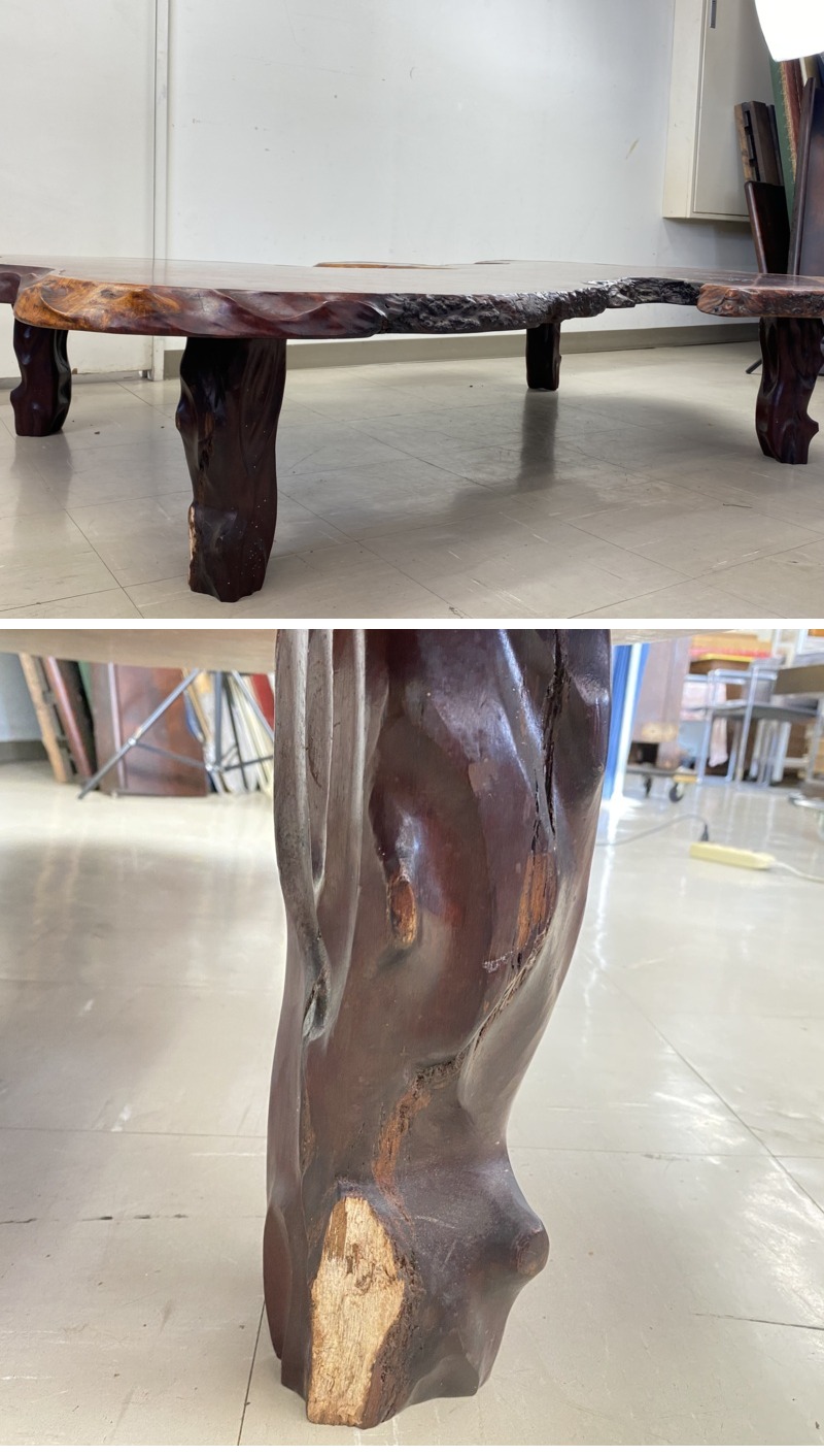 ◇商品情報◇ | 当店の商品をご覧いただきありがとうございます!! 花梨 カリン 一枚板 座卓 幅177cm 厚さ5cm ローテーブル 座敷机 センターテーブル リビングテーブル になります。 サイズ:全長 約177cm、奥行 約120cm、高さ 約35cm、厚さ 約5cm 経年/使用に伴うキズ・汚れ・シミ、脚キズ等ございます。 脚は外れます。 天板と脚は接着剤で止まっていたため若干ガタつきがございます。 状態などは画像を参考の上、ご検討をよろしくお願い致します。 ※撮影の都合上、サイズ感で茶碗が写っておりますが付属は致しませんので予めご了承ください。 送料元払いクロネコヤマト家財便での発送になります。 落札後直接、当社へお引取りも大歓迎です!積み込みはお手伝い致します。 ※目視チェックをしていますが、表記漏れや見落としや細かな擦れ・薄汚れなどがある場合もございますので予め画像をご確認の上でご入札をお願いいたします。 簡易動作確認済みですが中古家電品の寿命については個体差があるため不具合がございましたら到着後3日以内の故障や初期不具合のみの対応となります。 お品物が届きましたらお早めにチェックや動作の確認をお願いいたします。 ※発送時注意点※ 大型商品につき発送は個人・法人問わず、クロネコヤマト家財便で発送となります。 大きい商品になりますので離島など一部輸送できない地域もありますので心配な方は事前にクロネコヤマト家財便にお問い合わせ下さい。 ※気持ちよくお使い頂けるように簡易ですが清掃済みです。取りきれない汚れなどはご容赦下さい。 | ||||||||||||