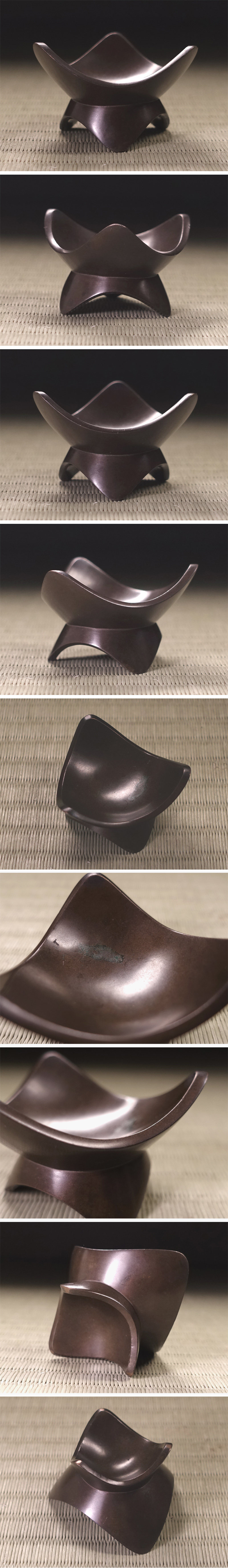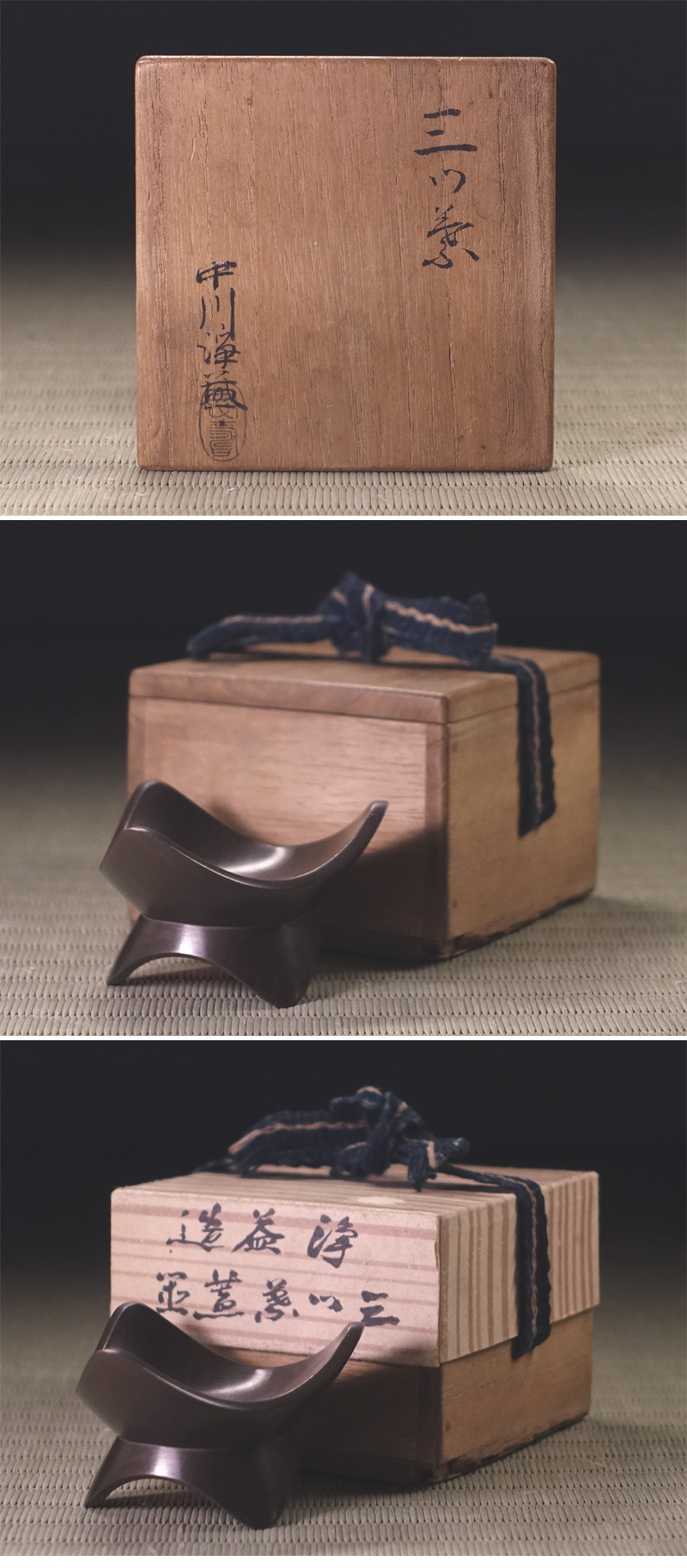 ∇花∇【六代中川浄益(吉右衛門)】作 古銅三ツ葉蓋置 共箱付 收藏