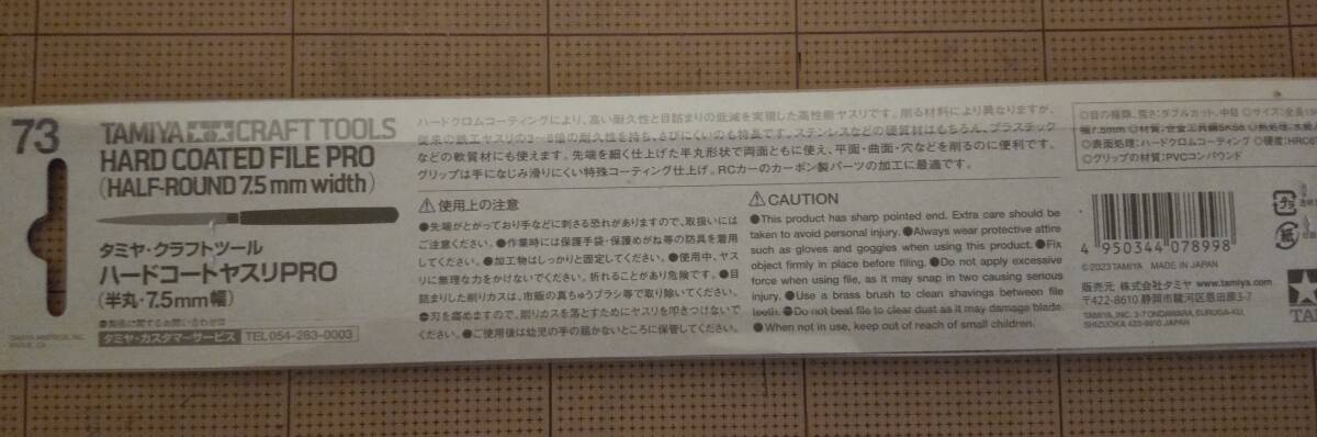 プラモデル タミヤ CRAFT TOOLS ITEM74073HARD COATED FILE PRO(HALF-ROUND7.5mmwidth) ハードコートヤスリ(半丸7.5mm幅)(未使用) 收藏