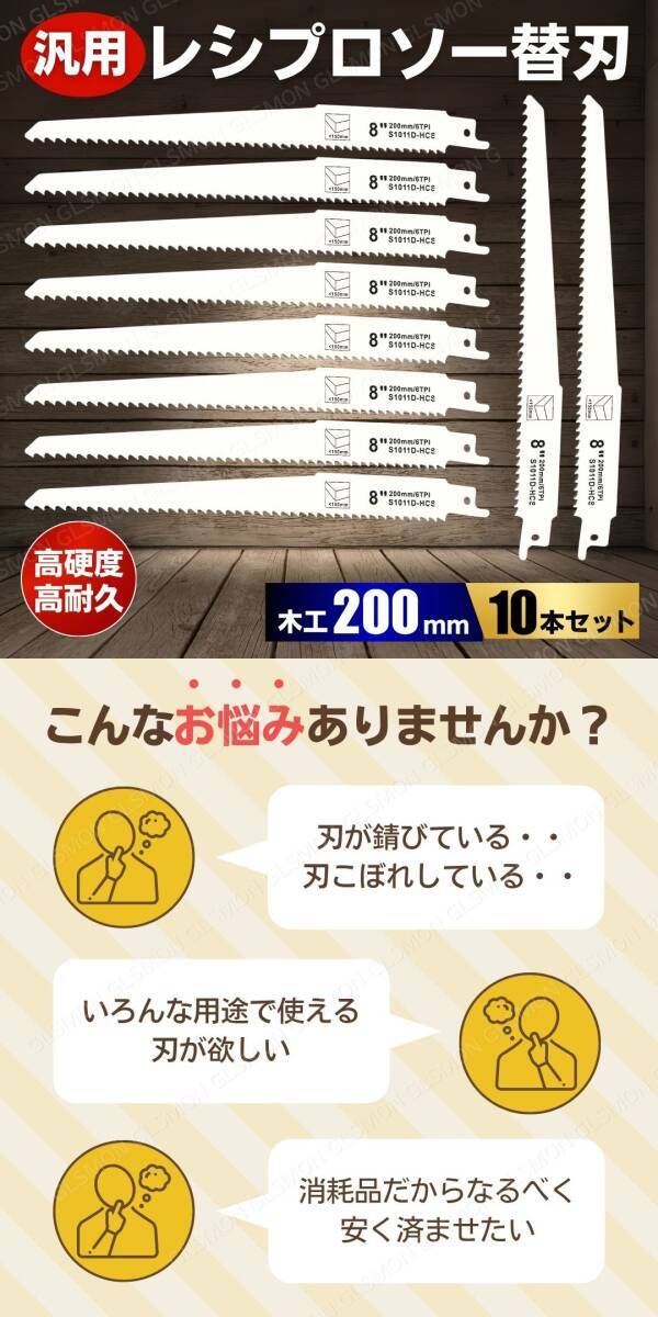 レシプロソー 替え刃 セーバーソー 替刃 ブレード 200mm 10本 セット 木工用 工具 切断 電ノコ 日立 マキタ ハイコーキ リョービ ボッシュ 收藏