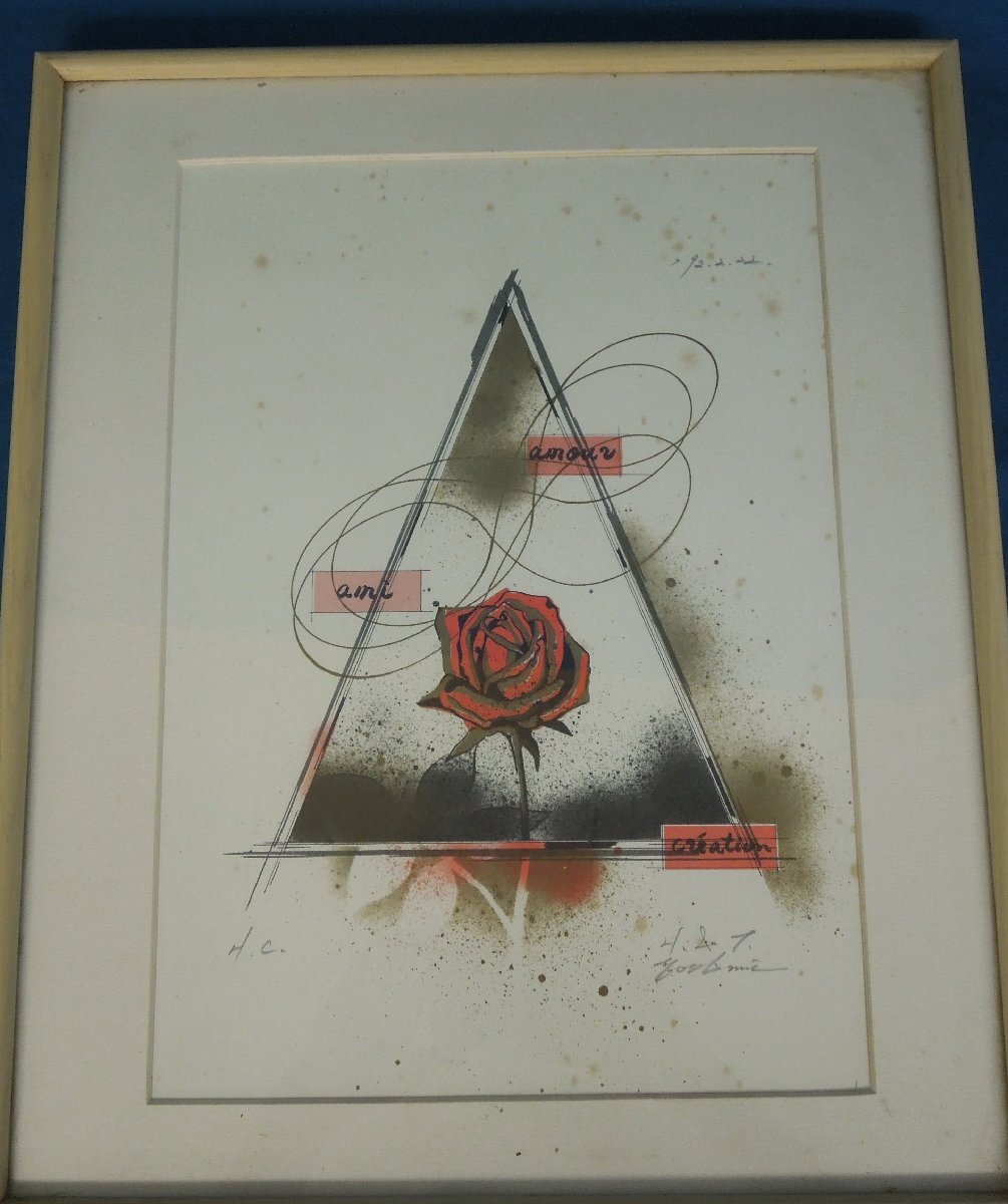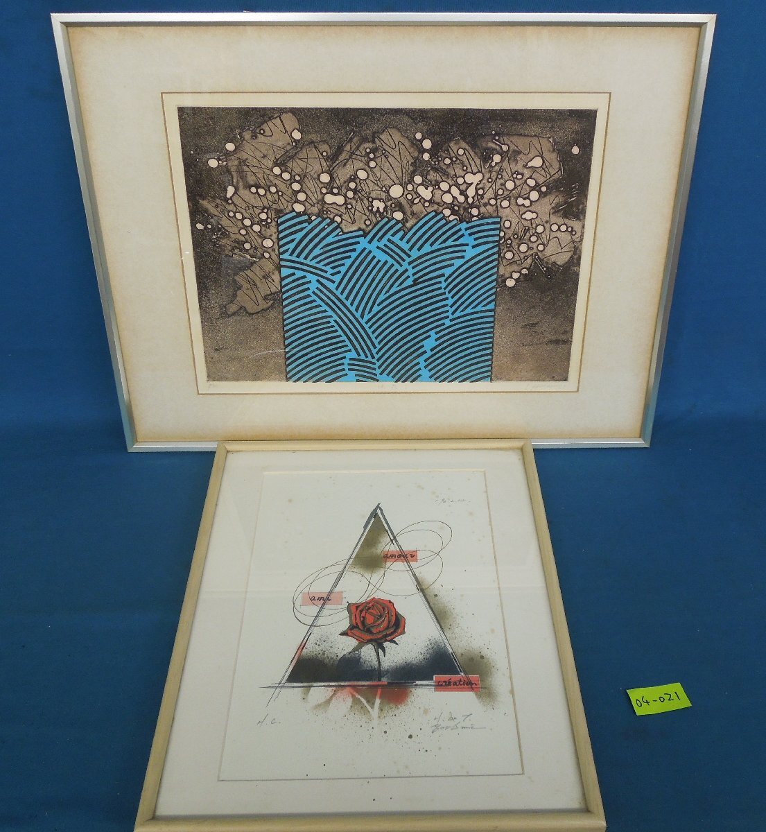 ★04―021★額装 署名 サイン有り H.Kazu? 詳細不明 現代アート 版画 開花I (9/30)・サイン有り バラ /エッチング 抽象版画 [140] 收藏