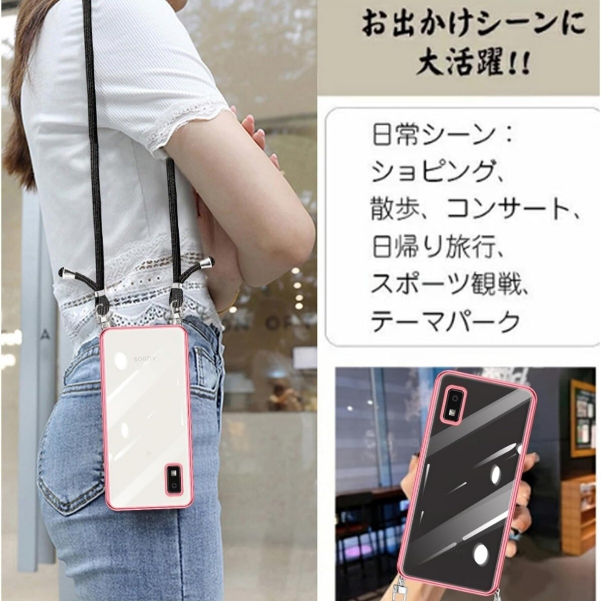 AQUOS wish3 ケース クリア ショルダー SH-53D A302SH ローズゴールド スマホケース カバー 透明 TPU ストラップ 肩首掛け 紐付き アクオス 收藏