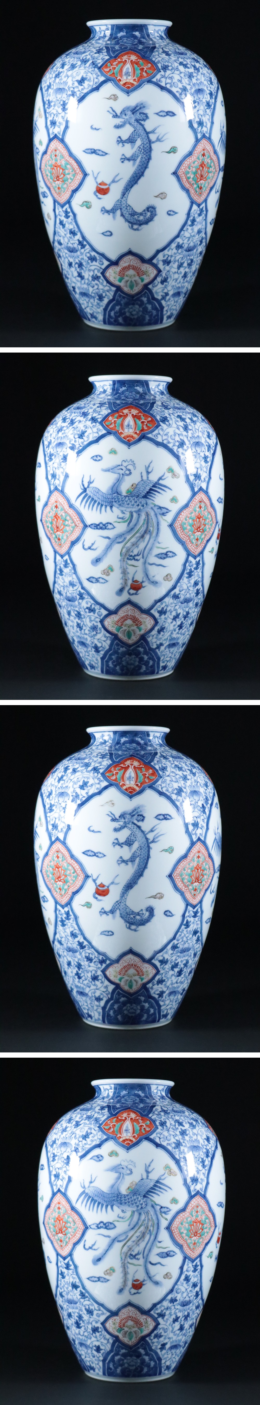 伝統工芸 有田焼 窯元 古琳庵 館林貞夫 舘林古琳庵 / 錦 龍鳳凰図 龍 鳳凰 花瓶 / 柿右衛門様式 花器 花入 花生 飾壺 飾壷 / 高さ31,8cm 收藏