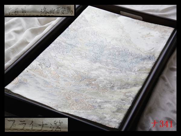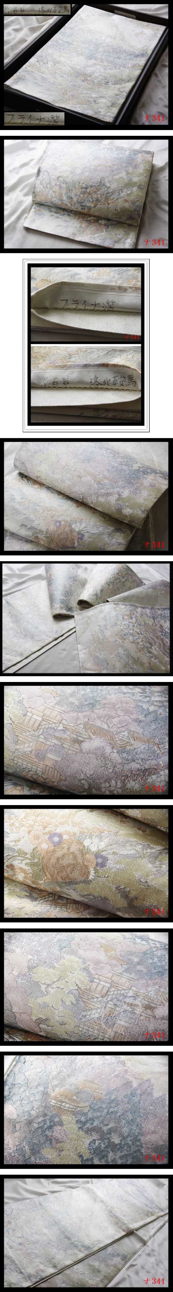 【ナ341】厳選逸品 プラチナ箔 京百景 洛北鞍馬 シルバー色地 気品豊かに 正絹六通高級美術袋帯 検★着物名古屋帯和装小物帯締め 收藏