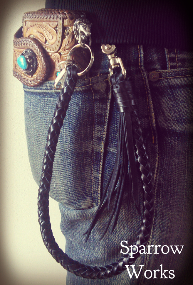 ★黒 8本編み レザーウォレットチェーン 日本製 ブラック ★ ハンドメイド 革 財布 アクセサリー 釣り ツールホルダー 誕生日 プレゼント★ 收藏