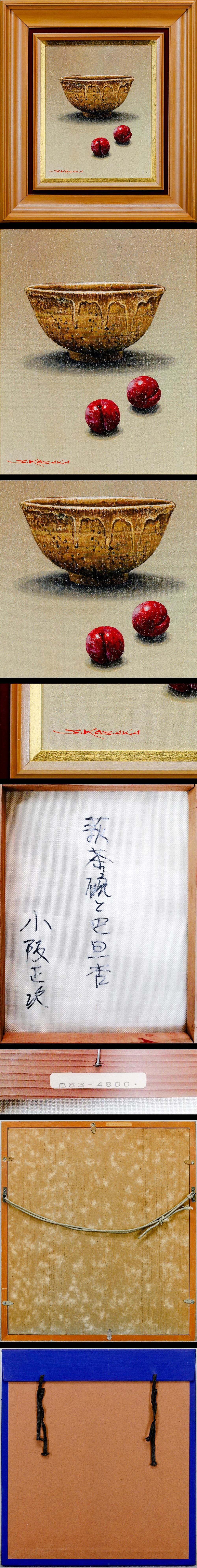 【真作】【WISH】小阪正次「萩茶碗と巴旦杏」油彩 3号 一枚の絵取扱作品 ◆陶の温もりと果実の艶 〇新象作家協会創立会員 #25102432 收藏