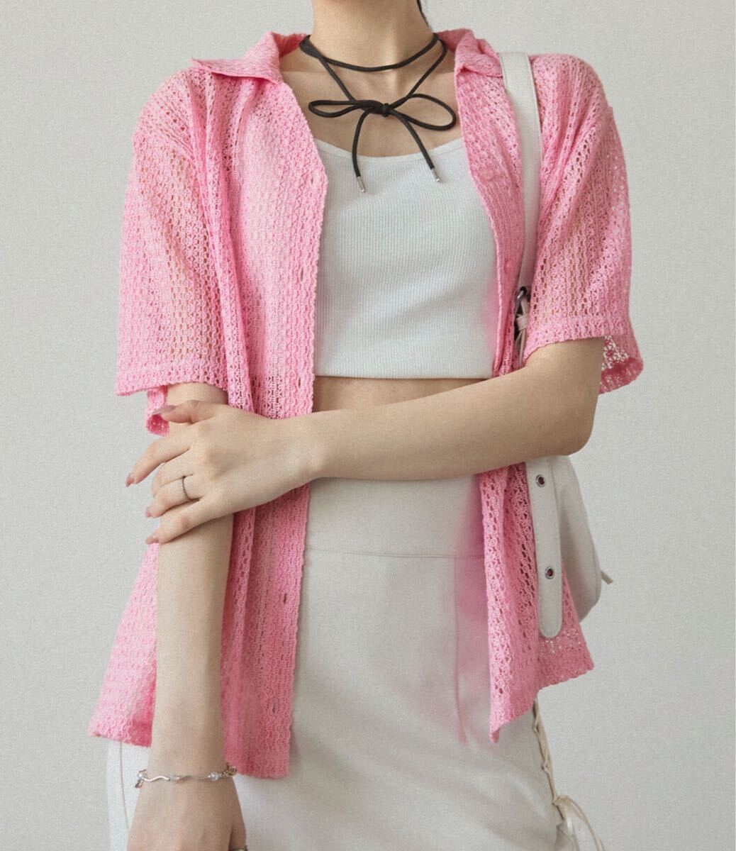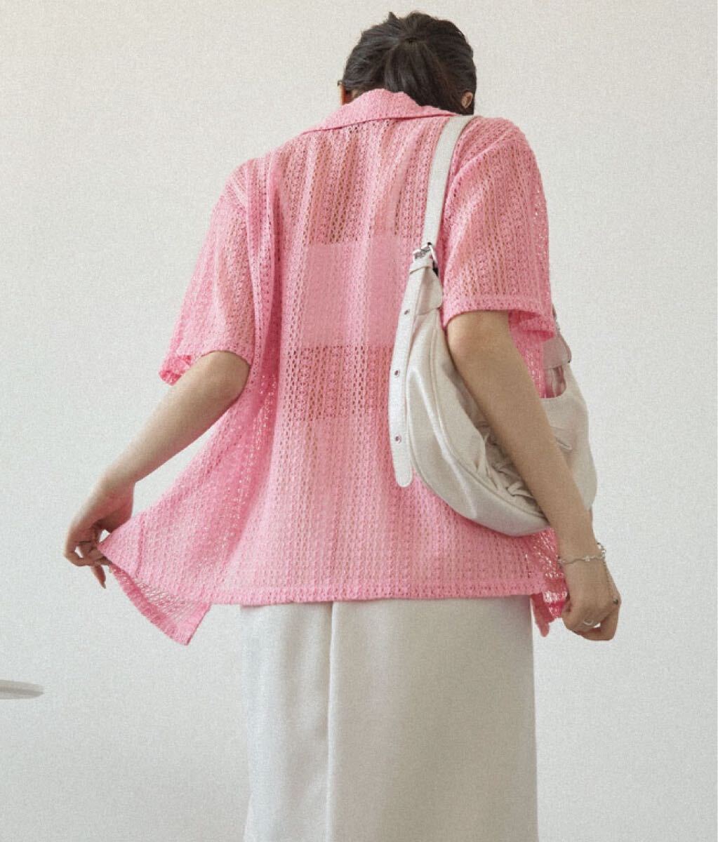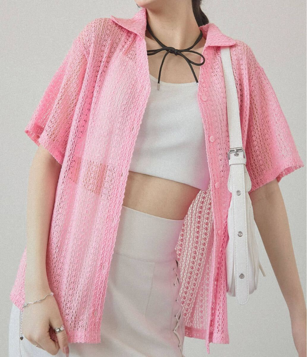 新品スキッパーレースシアーシャツ ピンク フリーサイズ 收藏