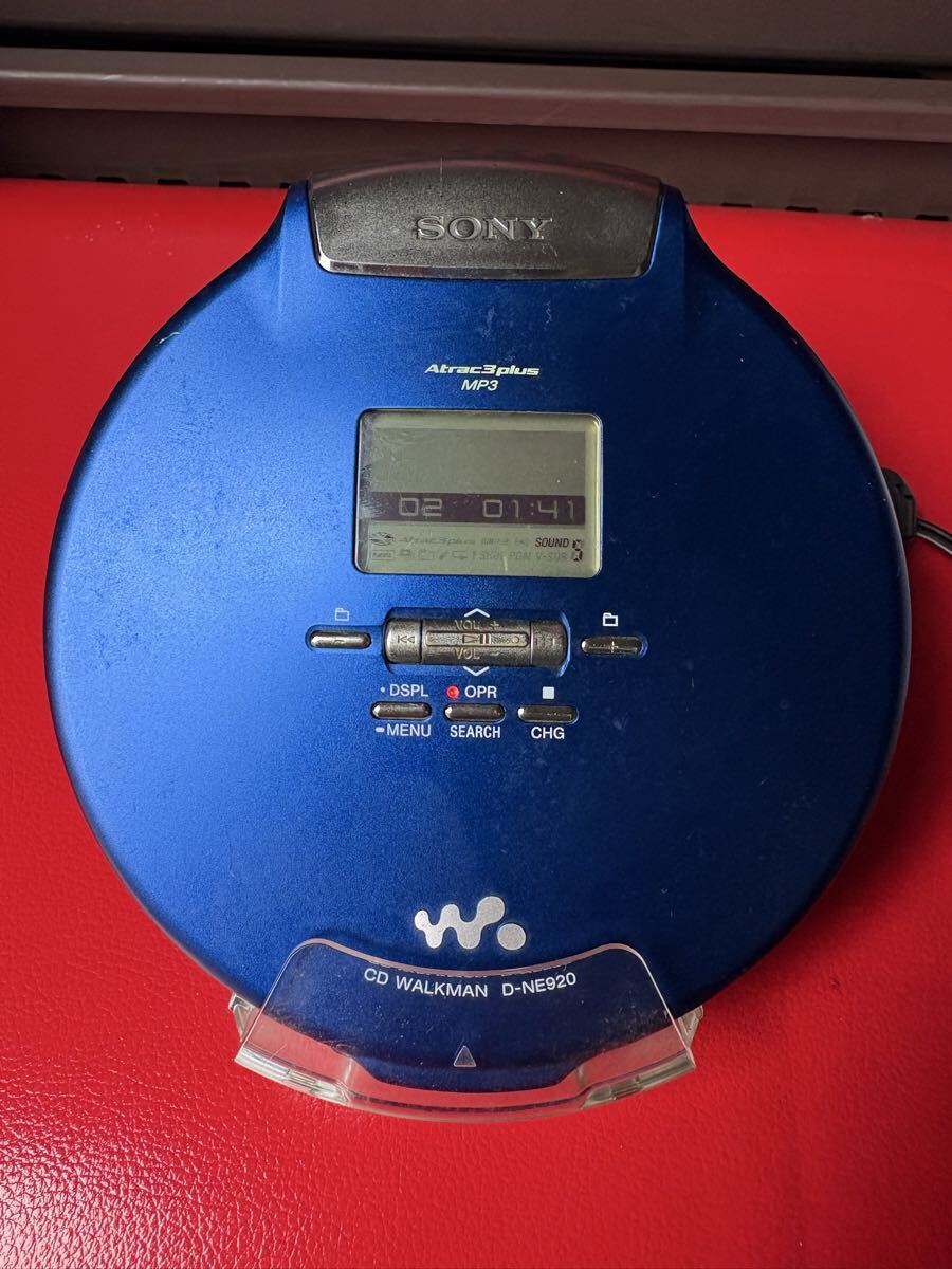SONY ソニー CDウォークマン D-NE920 ブルー 再生OK 中古一式 アダプター難有り ジャンク扱い 收藏