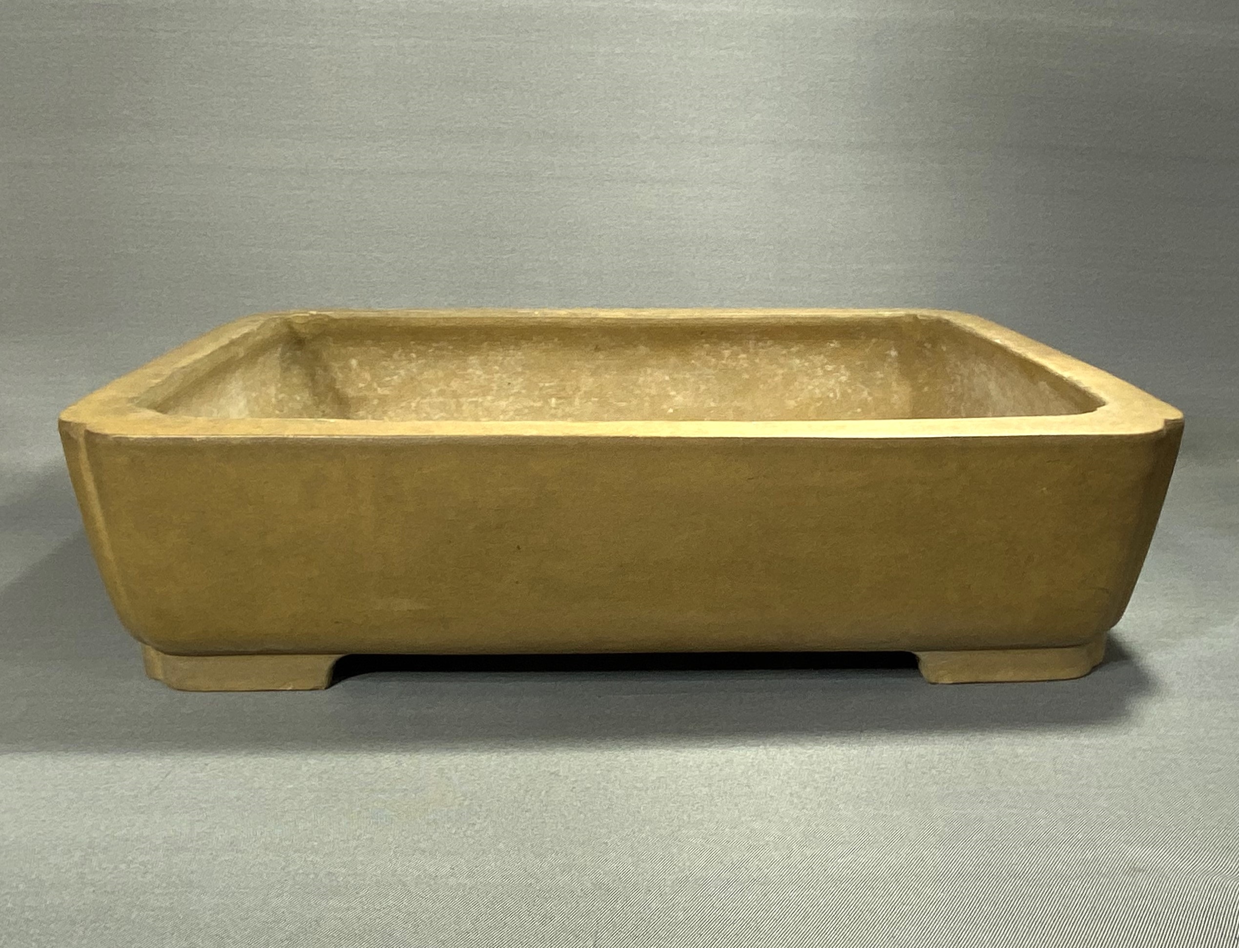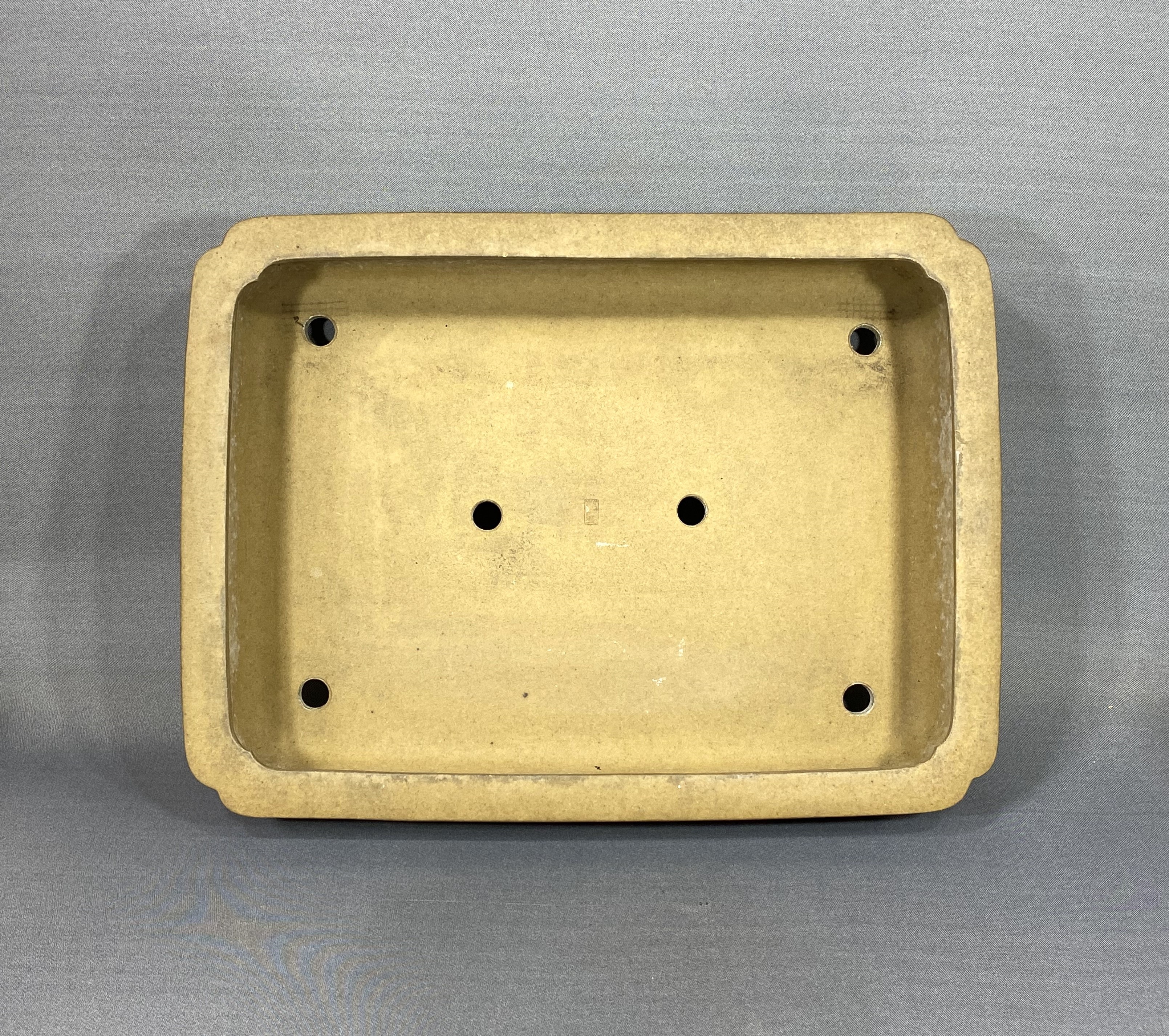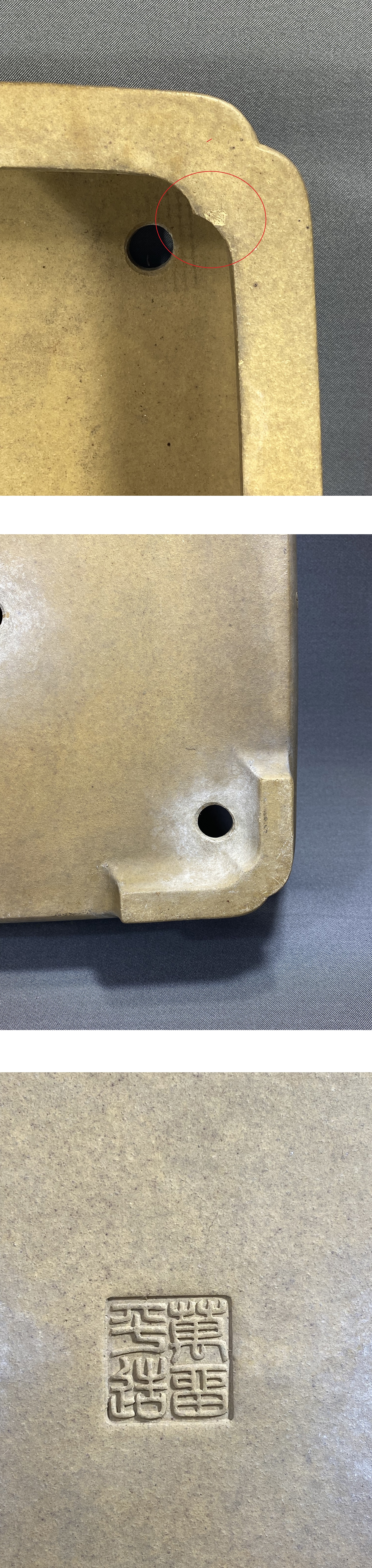 【風車】 人気和鉢作家 萬留平 造 内縁隅入 長方鉢▲白泥 盆栽鉢▲古美術品 落款 時代品 收藏