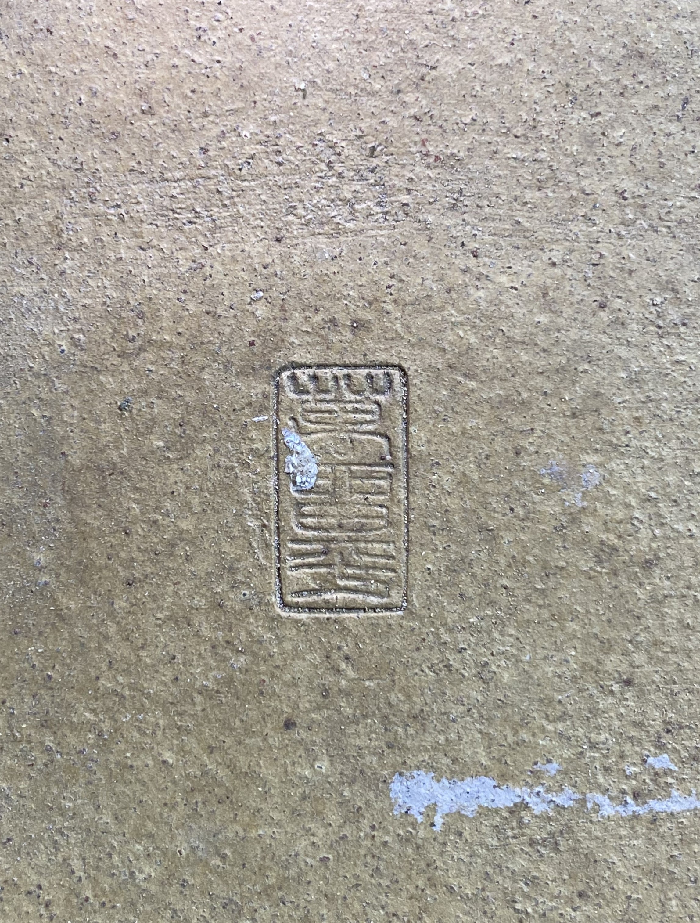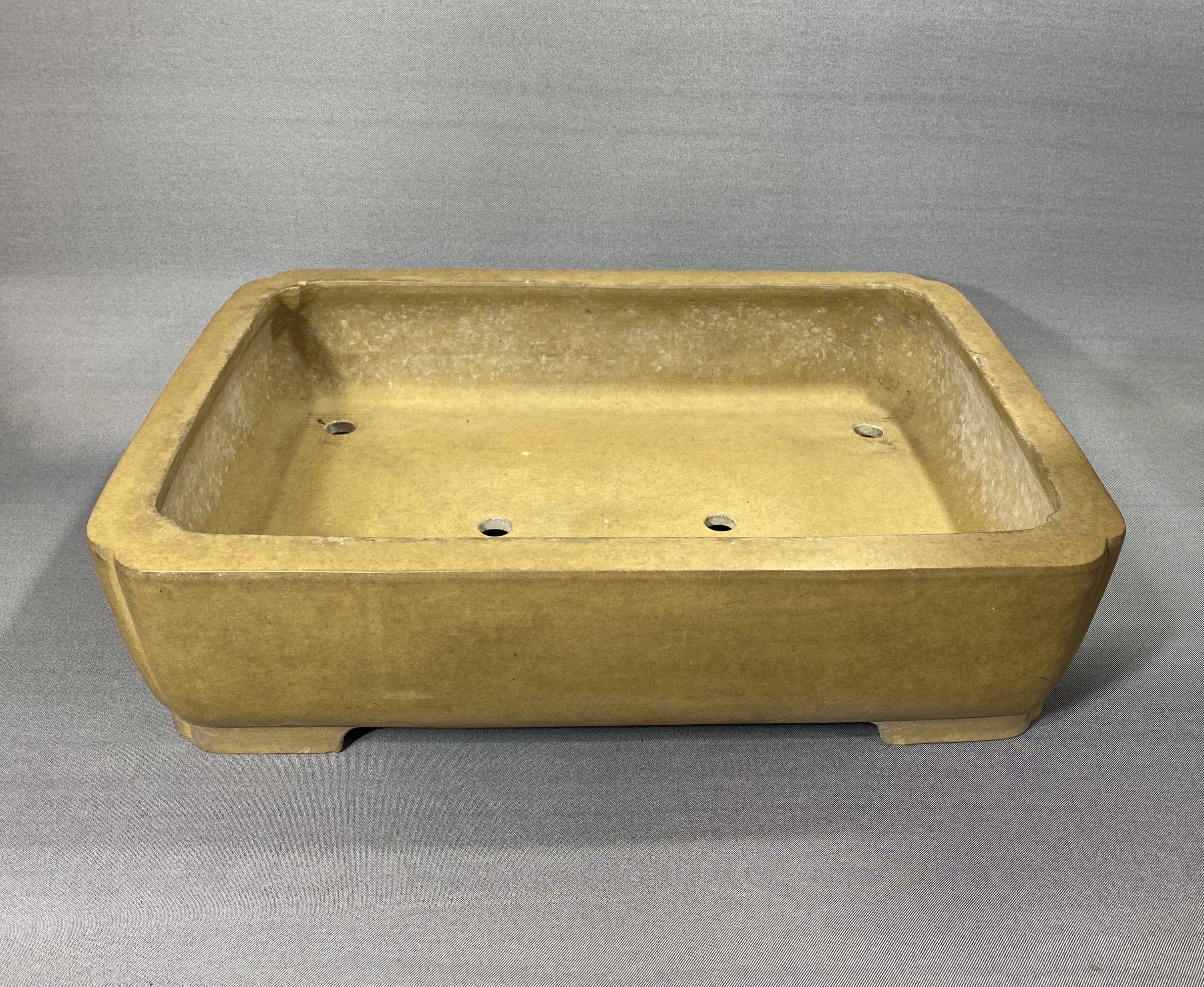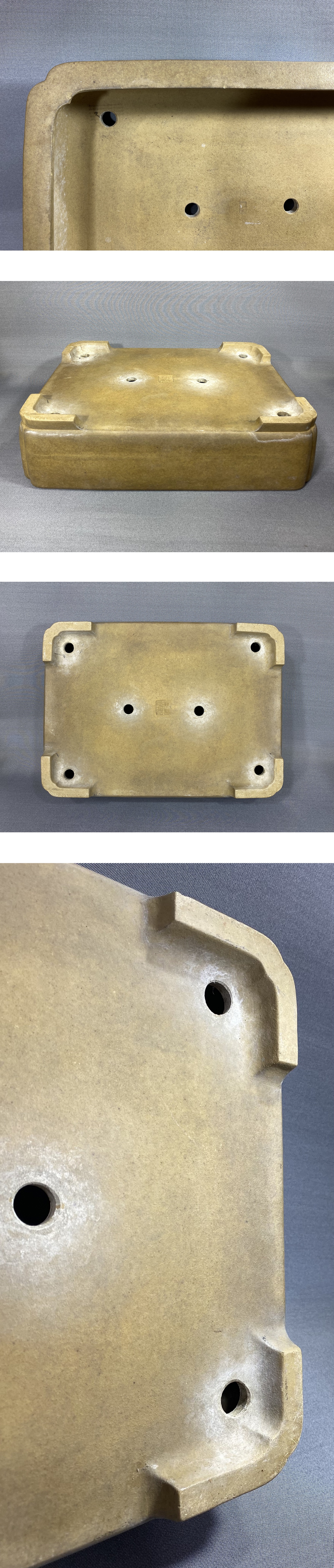 【風車】 人気和鉢作家 萬留平 造 内縁隅入 長方鉢▲白泥 盆栽鉢▲古美術品 落款 時代品 收藏