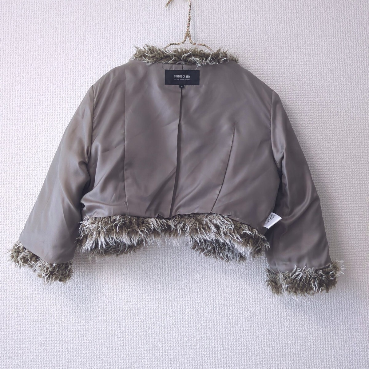 美品 コムサイズム ふわもこ フェイクファー ボレロジャケット グレー レディース Lサイズ 秋冬 收藏