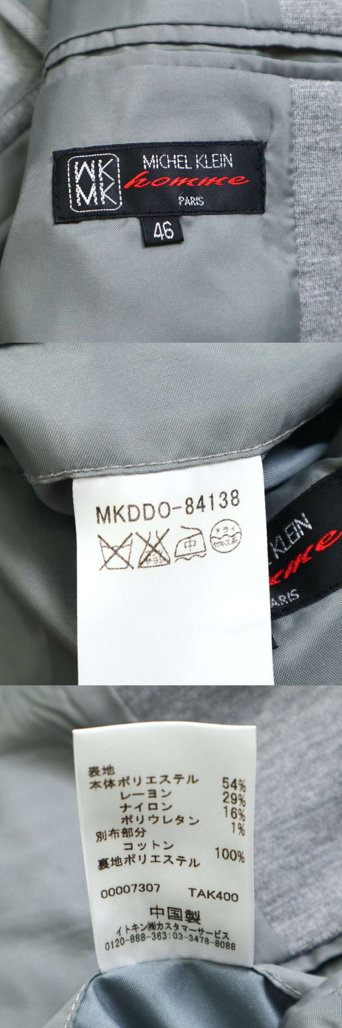 MK HOMME ミッシェルクラン オム 通年 背抜き★ スリム アンコン テーラード ジャケット Sz.46 メンズ グレー 收藏