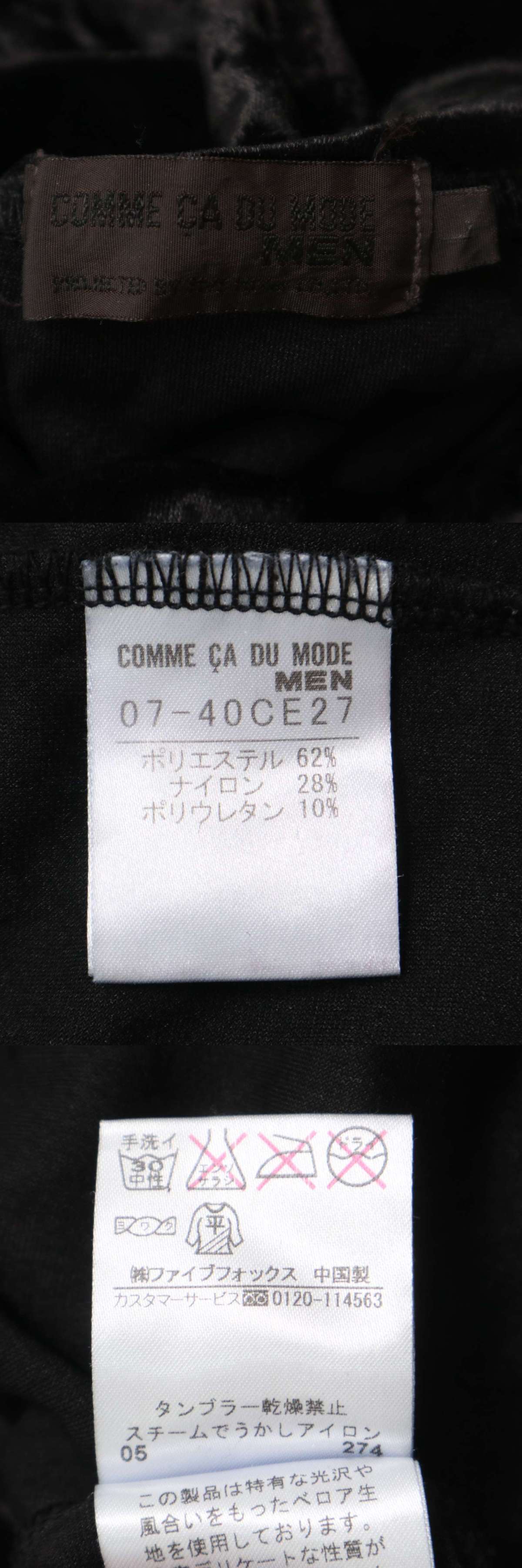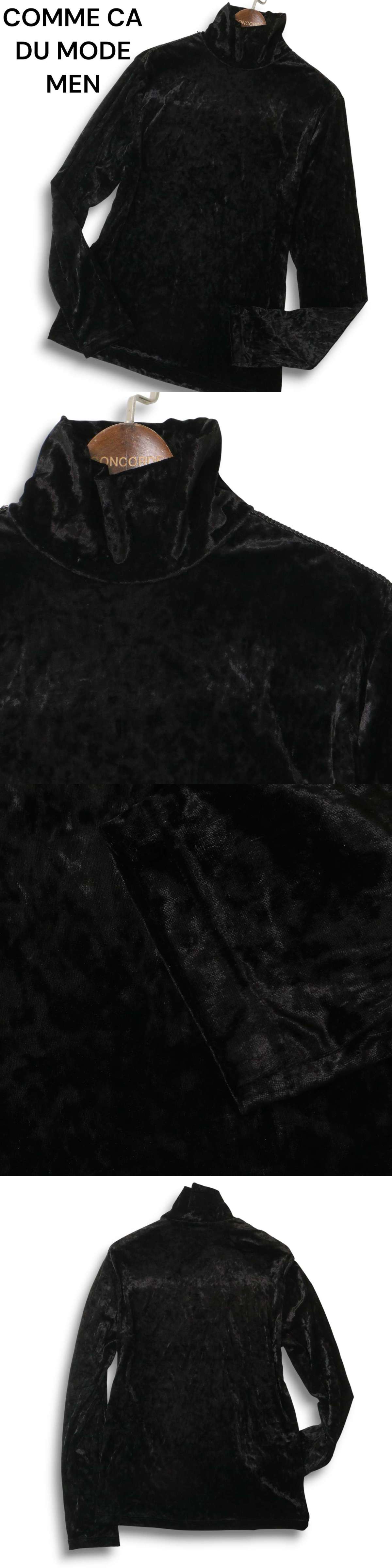 COMME CA DU MODE MEN コムサデモード メン ベロア★ チェーン装飾 長袖 ハイネック カットソー Tシャツ Sz.L メンズ 黒 收藏