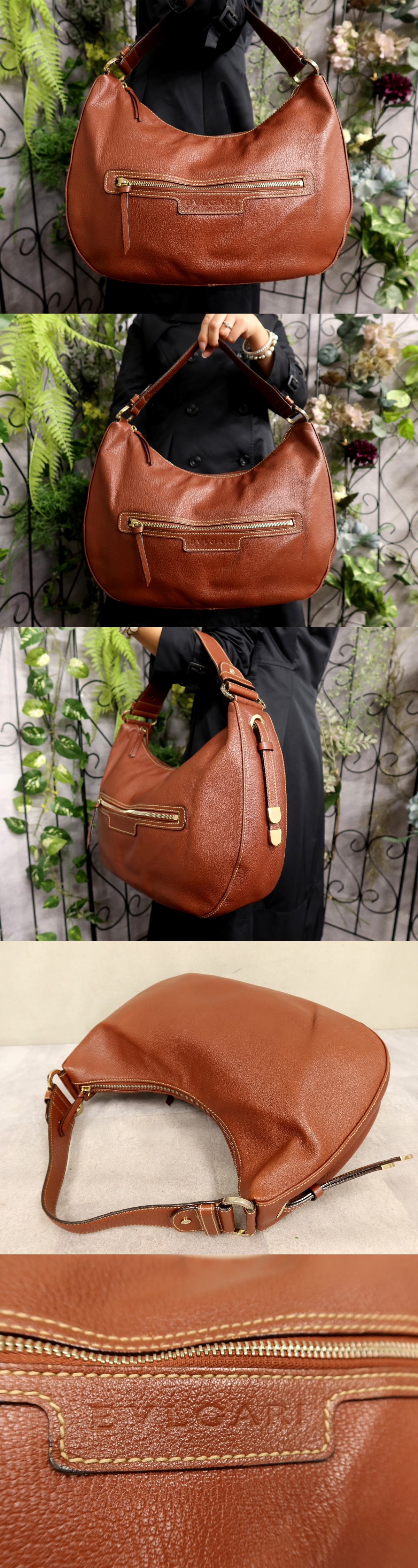 ●超美品●BVLGARI ブルガリ●ロゴ型押し●カーフ レザー 本革●ハンド ワンショルダー バッグ●ブラウン●ゴールド金具●A4 収納●Js61679 收藏