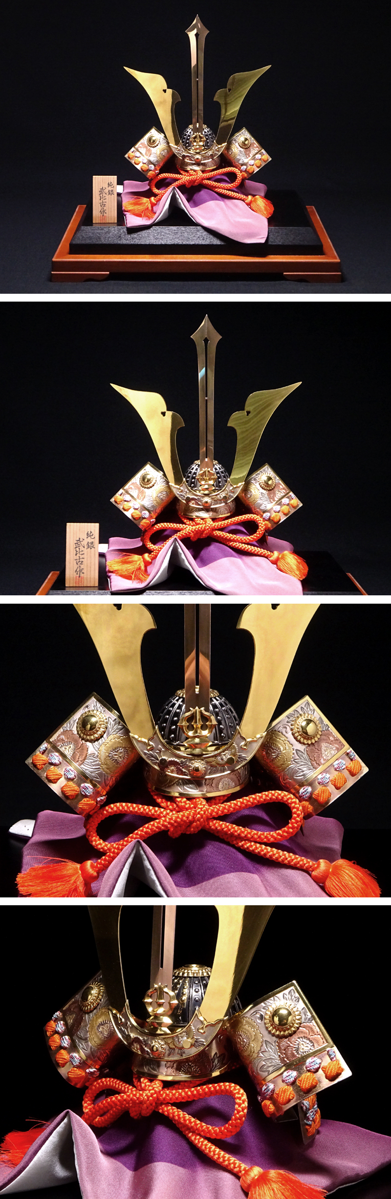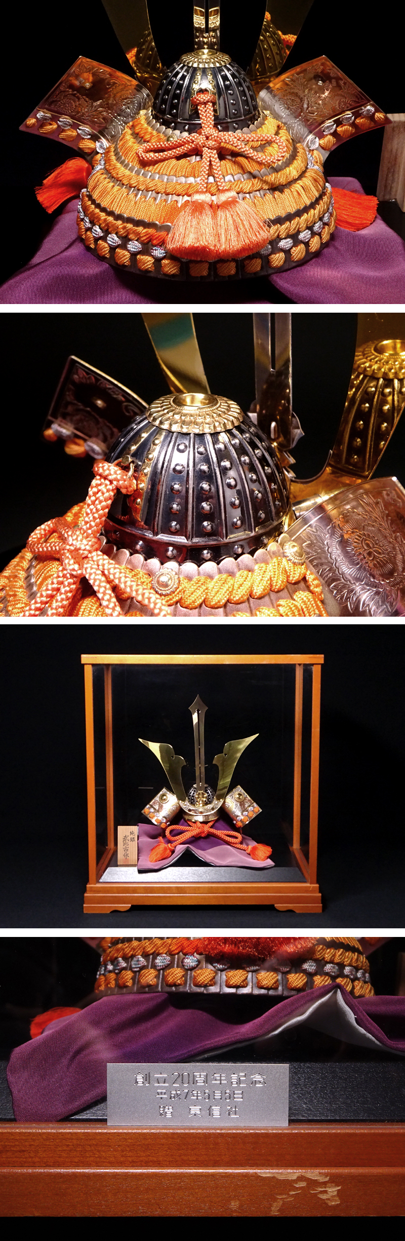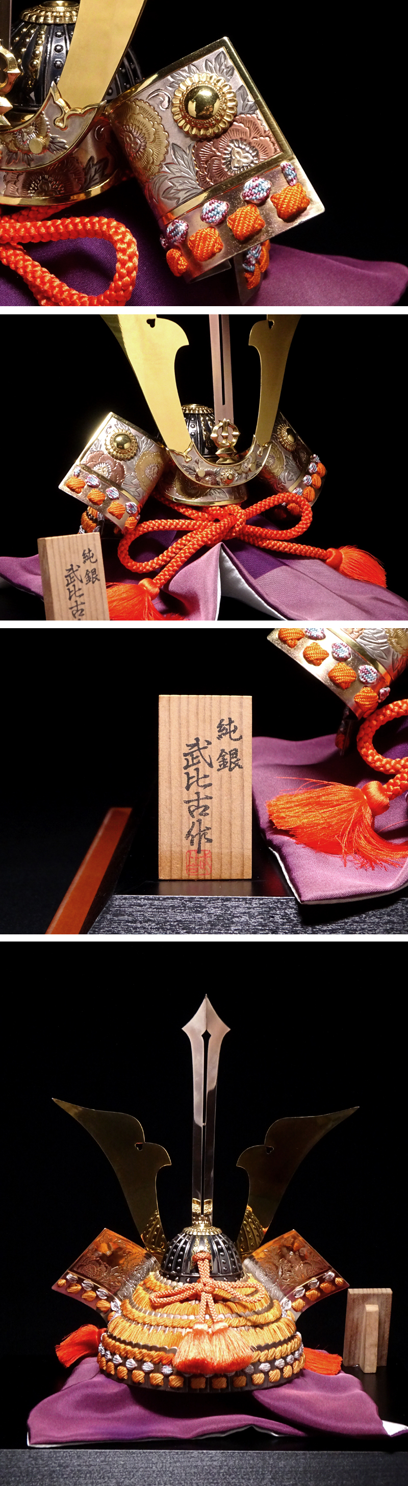 慶應◆東京銀器の名工【関武比古】作 純銀製『兜・3号』剣付 定価33万円!置物 専用ガラスケース 收藏