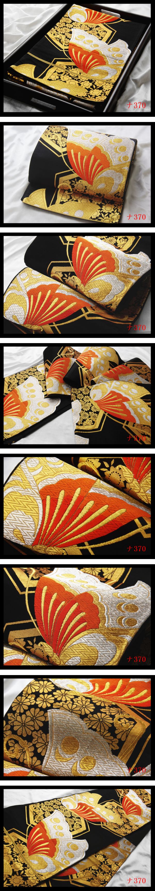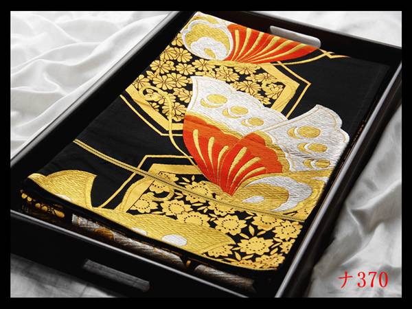 【ナ370】西陣美品 振袖可 花蝶紋 黒色地 気品豊かに 正絹純金糸六通高級美術袋帯 検★着物名古屋帯和装小物帯締め 收藏