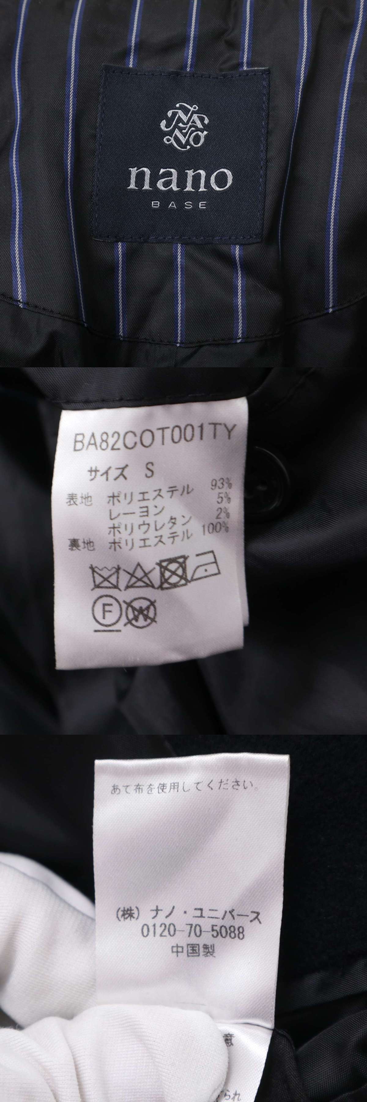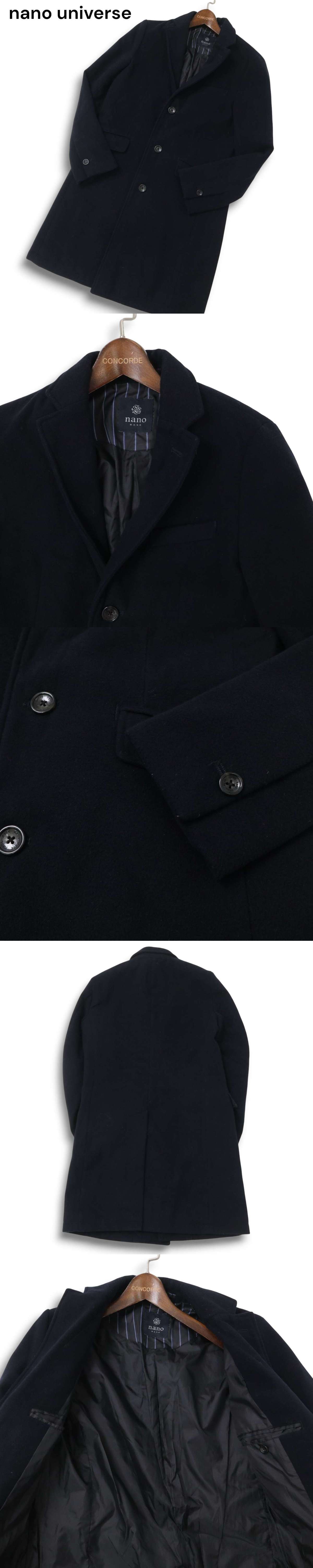 nano base ナノユニバース 秋冬★ ウールライク チェスター コート Sz.S メンズ 紺 ネイビー 收藏