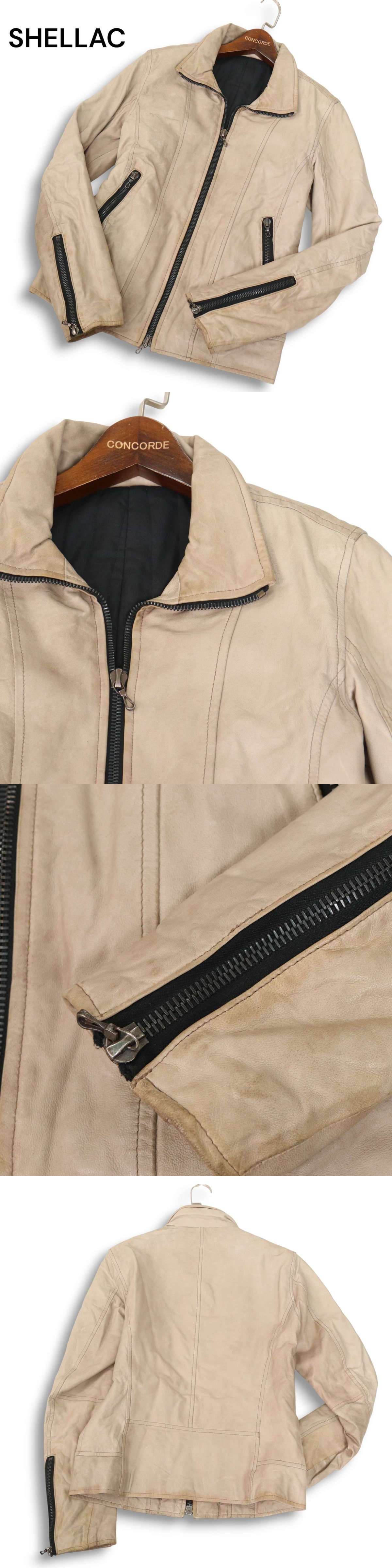 SHELLAC シェラック 秋冬 中綿入り★ 羊革 ラム レザー シングル ライダース ジャケット Sz.46 メンズ 收藏