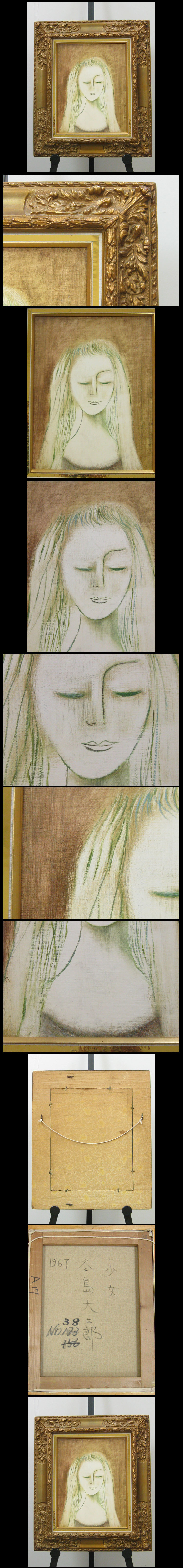 【心庵】額装 冬島大二郎「少女」油彩 美人画 F6号 二科会会員 国際芸術文化賞 北海道 KB033 收藏