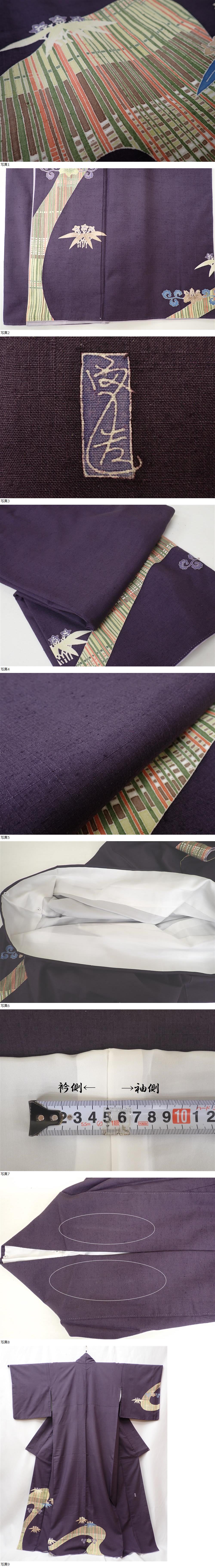 逸品 本加賀友禅 宮野勇造 落款 紬地 灰紫 身丈162cm(+6cm) 裄丈67cm 袷 | ||||