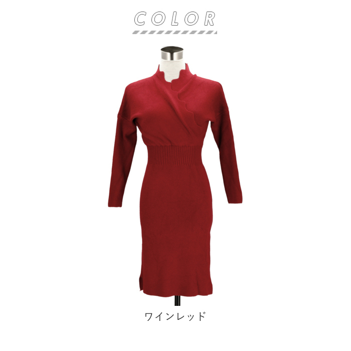 ☆ キャラメル カシュクール ニット ワンピース 通販 タイト レディース ゆったり 秋冬 長袖 冬 きれいめ カジュアル 上品 膝丈 スカラッ 收藏