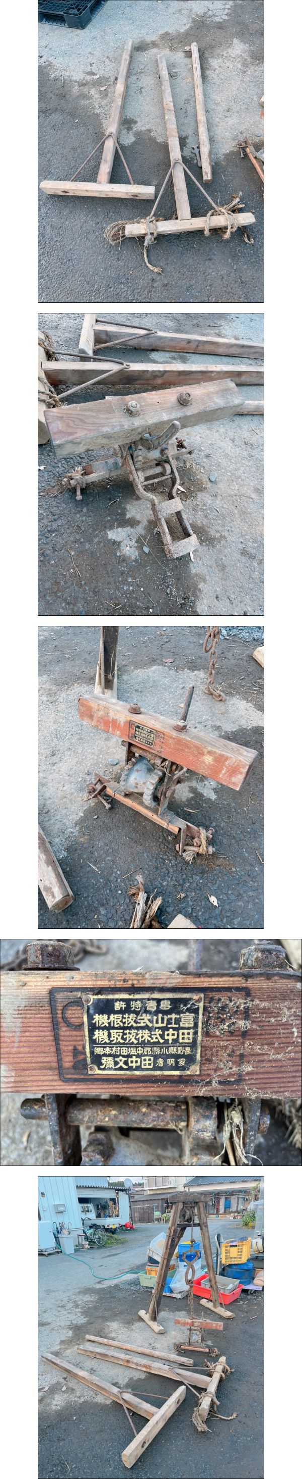現状品 抜根機 伐根機 富士山式抜根機 田中式株抜取機 古民具 農具 木製 チェーンブロック 古道具 茨城県常陸大宮市 1116あら3 I外 西 收藏