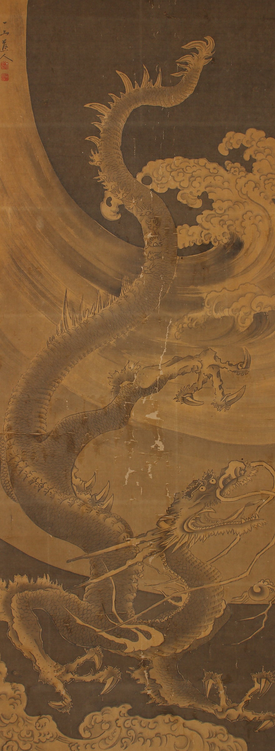 【模写】【伝来】am5177〈萩原一山〉希品 龍図 月僊師事 江戸時代後期 森旭亭娘婿 岐阜の人 收藏