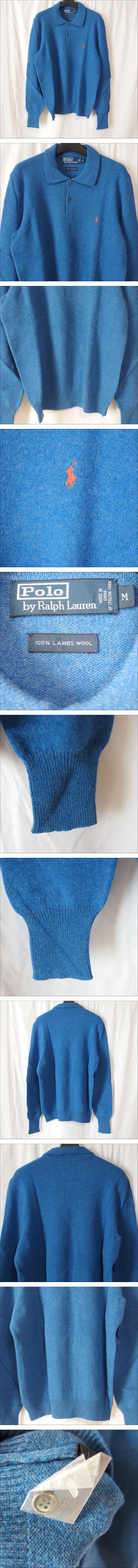 Ralph Lauren◆ラルフローレン メンズ 長袖 ウール製 ポロセーター(ブルー)サイズM◆USED | |||